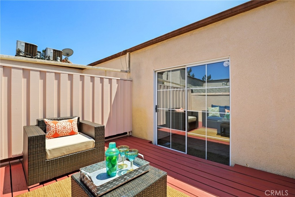 Lovely Mediterranean-style secure complex, walk through the open-air, lush courtyard to find this beautiful and spacious top floor condo with a loft. Tax records show 2 bed that can be used as a 2nd bedroom or office, and opens to a private rooftop deck. The living room is a bright open-concept with a dramatic 2-story ceiling and fireplace with tons of natural light. This home also includes new laminate wood flooring & carpet, with central air conditioning & heating, and stack washer and dryer in unit. There are 2 tandem parking spaces located in the subterranean garage. Centrally located a short distance to Silicon Beach, the Marina, the airport, shopping, and restaurants with easy access to the freeway.