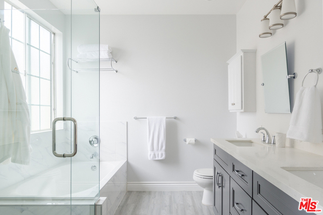 Extensively renovated, single level corner unit boasts fabulous kitchen w/wall to wall cabinetry, quartz countertops, breakfast bar, new stainless steel appliances & new chrome fixtures. Kitchen opens to the dining area & spacious living room w/gas burning fireplace. Oversized balcony off of the living room is perfect for entertaining. Featuring REAL hardwood floors throughout, recessed lighting, base moldings, central air/heating & INSIDE laundry w/stacked combo washer/dryer. Grand master suite offers 2 closets, ceiling fan & renovated bathroom w/seamless shower recently tiled w/separate tub, new countertops, cabinets & lighting fixtures. The second master suite is separate from the other bedrooms for additional privacy, bathroom is equally as renovated. Complex offers security cameras, key access elevator, additional storage space in front of the tandem parking 31/32. This 27 unit complex is located on a cul-de-sac street, close to the 405 Freeway, new Inglewood Stadium, LAX.