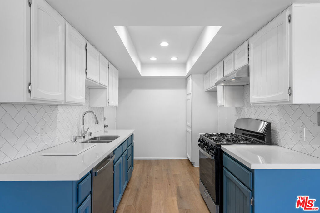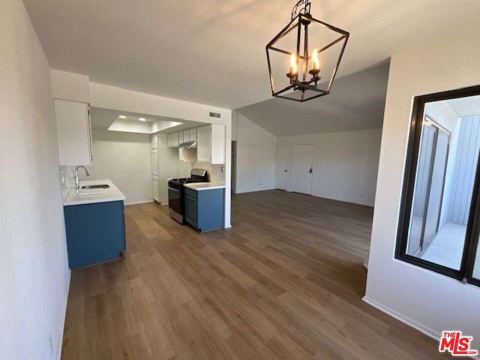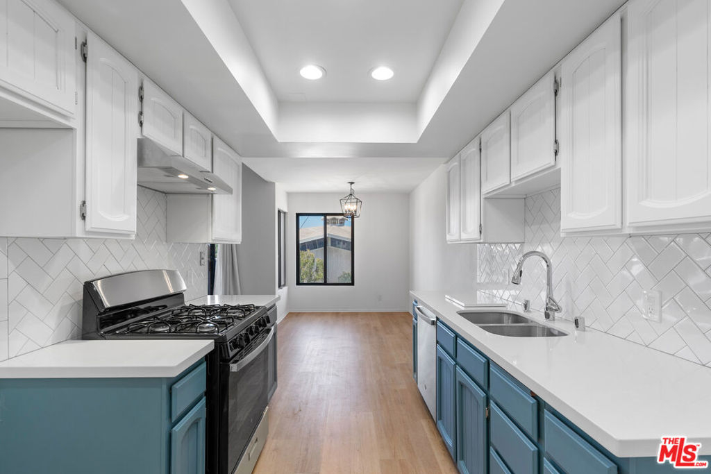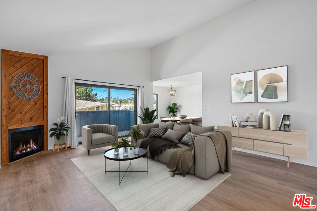 Beautifully renovated 2 bedroom, 2 bathroom light and bright top floor luxury condo in prime Westchester! Upon entering the newly painted unit, one is greeted by the voluminous living room with its impressive vaulted ceilings and the hearth with beautiful wooden panels above it. The living room overlooks the deck/patio and the exterior and flows seamlessly to it and the dining area, which has two windows, allowing for natural light. The dining area, while separate, easily leads to the newly updated kitchen; the gourmet kitchen boasts new canned lighting, new stainless steel appliances (stove, dishwasher, and refrigerator/freezer), new quartz countertops, plenty of beautiful cupboards, and a herringbone pattern tile design backsplash. The showstopper bathrooms prominently feature shower areas that are adorned with striking porcelain tiles with veins that are marble-like in design and also have new porcelain flooring, new vanities, and lighting. Both bedrooms are spacious and have sizable closets; the primary bedroom has an ensuite bathroom. Luxury Vinyl Plank flooring elegantly graces spaces in the condo. Enjoy the convenience of two side-by-side parking spots in the gated parking garage and storage in the building. Per the Seller, other notable features include a new water heater and a new garbage disposal. Simply put, this gorgeous condo is an oasis located within close proximity to LAX, Silicon Beach, the SoFi Stadium, the 405, and the amenities of the Westside and Playa Vista!