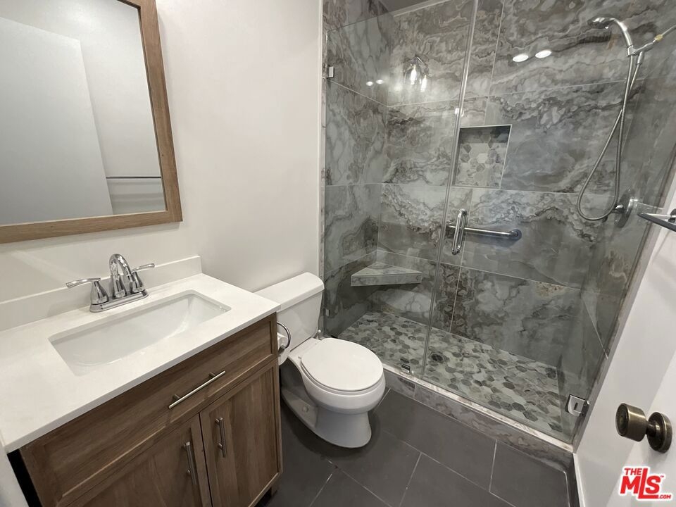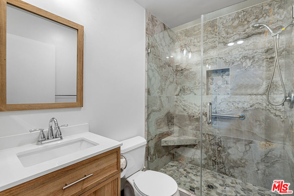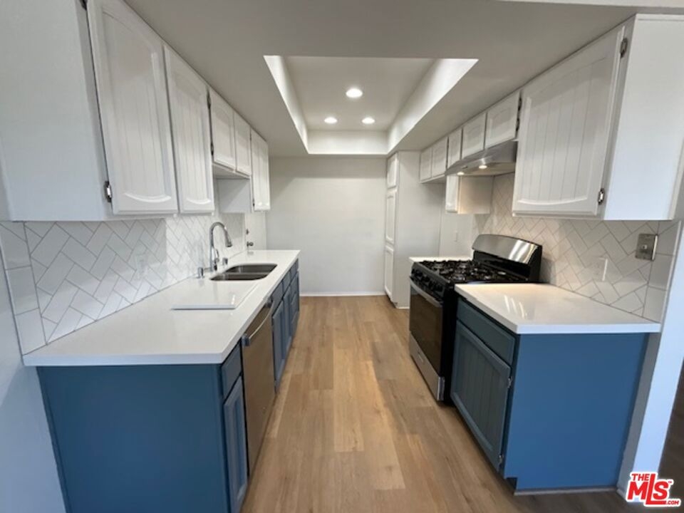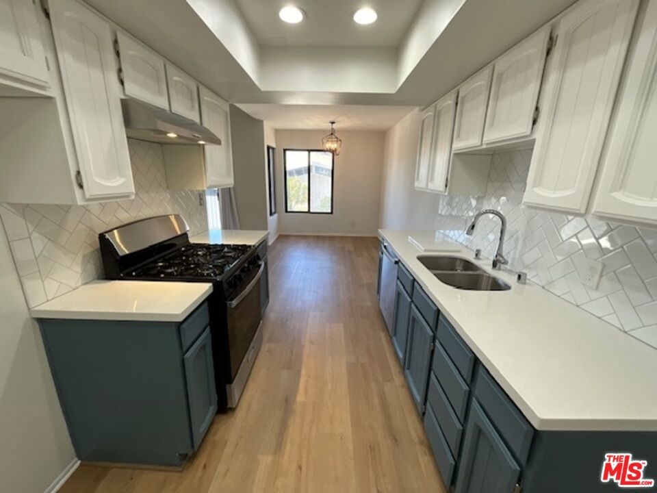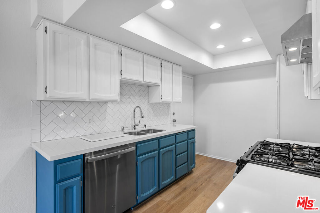Beautifully renovated 2 bedroom, 2 bathroom light and bright top floor luxury condo in prime Westchester! Upon entering the newly painted unit, one is greeted by the voluminous living room with its impressive vaulted ceilings and the hearth with beautiful wooden panels above it. The living room overlooks the deck/patio and the exterior and flows seamlessly to it and the dining area, which has two windows, allowing for natural light. The dining area, while separate, easily leads to the newly updated kitchen; the gourmet kitchen boasts new canned lighting, new stainless steel appliances (stove, dishwasher, and refrigerator/freezer), new quartz countertops, plenty of beautiful cupboards, and a herringbone pattern tile design backsplash. The showstopper bathrooms prominently feature shower areas that are adorned with striking porcelain tiles with veins that are marble-like in design and also have new porcelain flooring, new vanities, and lighting. Both bedrooms are spacious and have sizable closets; the primary bedroom has an ensuite bathroom. Luxury Vinyl Plank flooring elegantly graces spaces in the condo. Enjoy the convenience of two side-by-side parking spots in the gated parking garage and storage in the building. Per the Seller, other notable features include a new water heater and a new garbage disposal. Simply put, this gorgeous condo is an oasis located within close proximity to LAX, Silicon Beach, the SoFi Stadium, the 405, and the amenities of the Westside and Playa Vista!