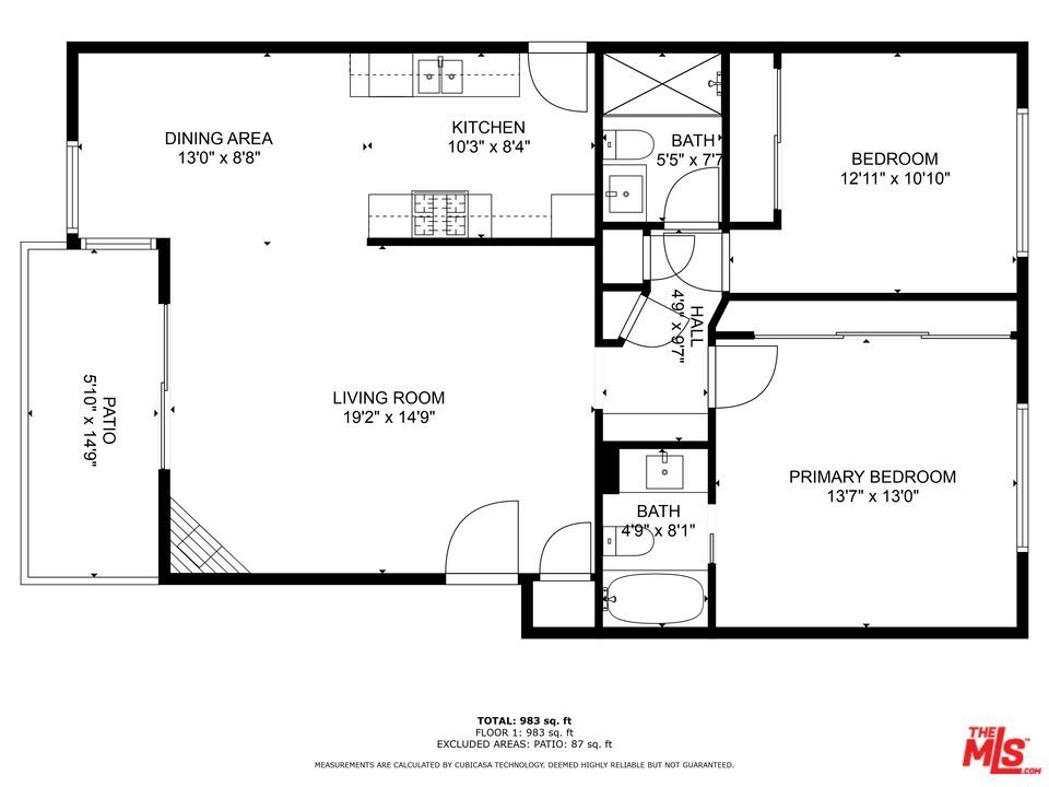 2 beds, 1.25 baths, 1,007 sq.ft.