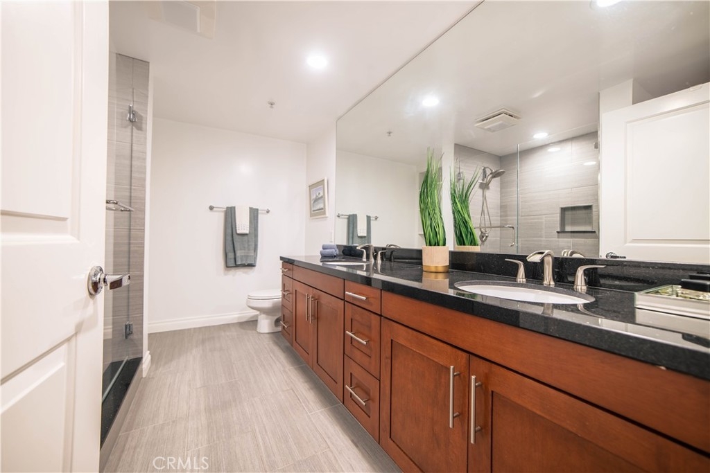 Welcome to Tremont! This turnkey 2 bedroom & 2 full bathroom condominium is located in a prime area of Westchester. Luxury features include high ceilings, an open floorplan and 3 access points to the extended balcony, surrounded by lush mature palm trees and beautiful views of the neighborhood. Master bedroom includes a double vanity, an oversized shower and built-in storage for a smart and modern look and feel. A stackable washer/dryer is perfectly hidden by closet doors for a continuous flush appearance. Other features include double pane windows, gas fireplace, central A/C & heat, dishwasher and matching stainless steel Bosch appliances: refrigerator, microwave and gas stove. This unit includes secured 2-car gated subterranean parking. Guests have access to a separate gated subterranean parking garage on the premises. HOA includes controlled access, heated pool & spa, well-maintained gym, a spacious Tuscan style clubhouse, courtyards and a secured mailroom. You couldn’t ask for a better location, with easy access to the 405, 90 and 10 freeways.