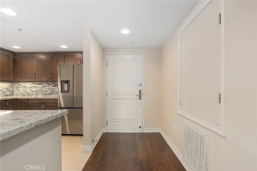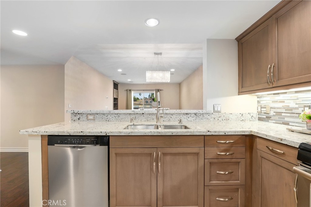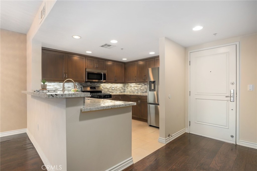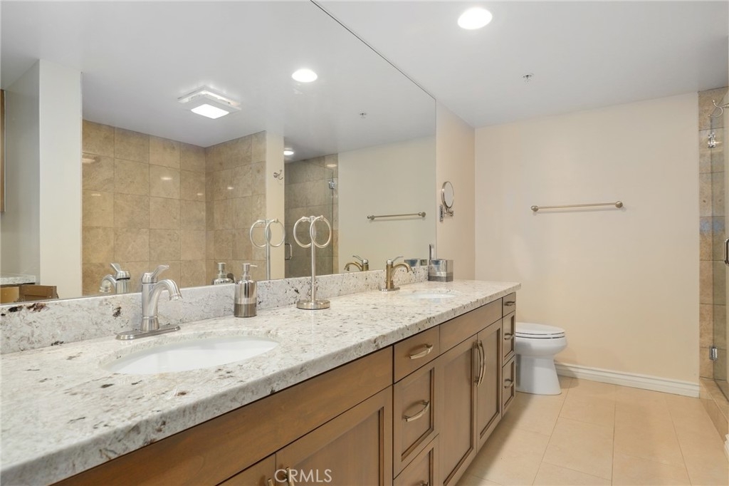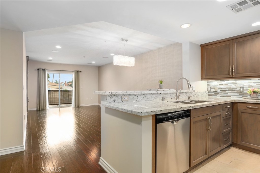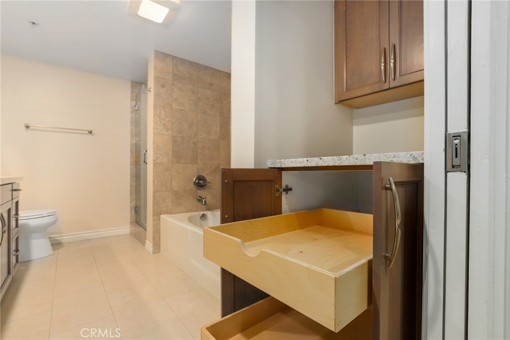 Proudly introducing this exquisite 2-bedroom, 2-bathroom condo spanning 1,150 sq ft in the highly sought-after Tremont complex. This is a 3rd floor END residence (sharing only 1 wall) boasts an open floor plan that seamlessly integrates the kitchen, dining, and living areas, creating a spacious and inviting atmosphere. The kitchen features granite countertops, custom cabinetry (soft close cabinets & drawers), a stylish subway tile backsplash, and quality stainless steel appliances. The blended living and dining areas are adorned with a stunning crystal chandelier, beautiful hardwood floors, built in surround sound speakers, and recessed lighting. Enjoy the outdoor setting with direct access from both bedrooms and living room to the expansive balcony. The balcony is equipped with a storage closet, a water feature, and offers expansive views of the city, facing the quieter side of building. The spacious primary bedroom includes a walk-in closet, an additional mirrored closet, an in suite bathroom with double sinks featuring a standalone shower, a luxurious bathtub, and additional storage with pull out drawers. Other great features include central heating and cooling controlled by Nest Thermostat and convenient stackable in-unit laundry setup near a linen closet with pull out drawers. HOA community amenities include sparkling pool and spa, Tuscan inspired clubroom, fitness center, beautiful courtyard, controlled access, gated parking garage that provides 2 designated spaces with extra storage cabinet and separate guest parking garage! Amazing location as you are moments away from the LAX, Westfield Mall, Howard Hughes Center, Marina Del Rey/Playa Vista, beaches, SoFi Stadium and all the surrounding entertainment, Culver City and so much more!!