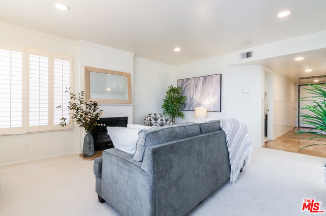 Beautifully renovated end unit w/abundance of natural light. The grand hallway/entry way welcomes you to the living & dining area which shares a cozy gas fireplace & balcony w/views. Unit features crown molding, dual pane/soundproof windows & wood shutters through out, new copper plumbing, new Stainless Steel appliances, recessed lighting w/dimming lights, stackable in unit washer/dryer & central air/heat. Newly installed carpet in the bedrooms/living room & travertine floors in hallway/kitchen/dining area & bathrooms. Master bedroom offers a private full bathroom w/double sink, plenty of closet space, guest bedroom has spacious double door mirrored closets. Unit is conveniently located next to the elevator & is one of only 2 units that has side-by-side parking spaces (bonus storage room- about 7 x 10'). The common areas offer refurbished pool/spa & community rec room. Low HOA fees, covers trash, water & maintenance. Secure entry, close to LAX, walking distance to restaurants.