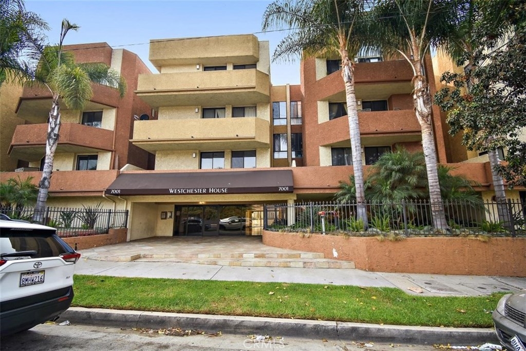 Chic TOP FLOOR Condo with soaring ceilings and no common walls on the bedrooms is fresh on the market! This unit does not face La Cienega Blvd making it serene, and offers gated parking for 2 vehicles, central air conditioning and heat, in unit washer and dryer, and a modern updated kitchen with quartz countertops. The high ceilings allow an abundance of natural light and offer the volume that makes the over 1022 square feet home feel larger than others. Both bedrooms are quite large and offer an abundance of storage and each has a full bathroom with shower and tub. You'll note from the photos that the dining space is being used as a home office during the pandemic, but there is a gorgeous light fixture that is ready for your table and chairs. Additionally, the balcony offers a nice place to relax in the afternoon sun. A huge bonus to this one is that you also get your own private storage room on the first floor where you'll also find the pool, hot tub and community room. Location is always very important in real estate and this one is no exception. The condo is centrally located close to Westchester, Silicon Beach, Culver City, LAX, the Forum and new SOFI stadium, 405 freeway, and walking distance to the future Metro stop and restaurants.