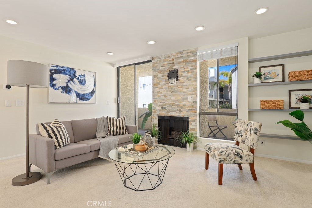 Proud to introduce this wonderful, hard to come by 1 bedroom/ 1 bath condo near Westchester. Be amazed by the open floor plan and modern finishes throughout the living space. The living room consists of a fireplace and windows that bring in ample natural sunlight. The private balcony off the living room extends for a spacious outdoor resting space to enjoy. A key element is the in-unit laundry that provides the utmost convenience. The bathroom consists of dual sinks, modern floor tile, and a glass-enclosed shower with a contemporary feel. The bedroom also takes in great natural light and has modern frosted glass-style closet doors that solidify the modern touch! This unit has 2 dedicated parking spaces and an approved electric 240V charging station installed next to the spaces. Included with HOA amenities are a gated controlled garage, private storage room, pool, hot tub, and a meeting room. Amazing location nearby the Amazon Fresh grocery store, Westfield Mall, Inglewood So-Fi Stadium, easy access to 405, and many other great neighborhood wonders!!!