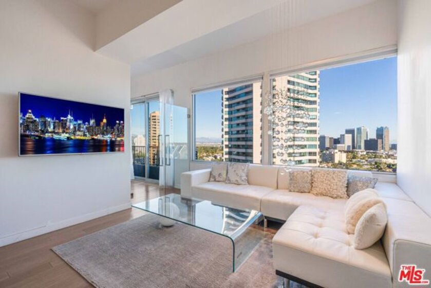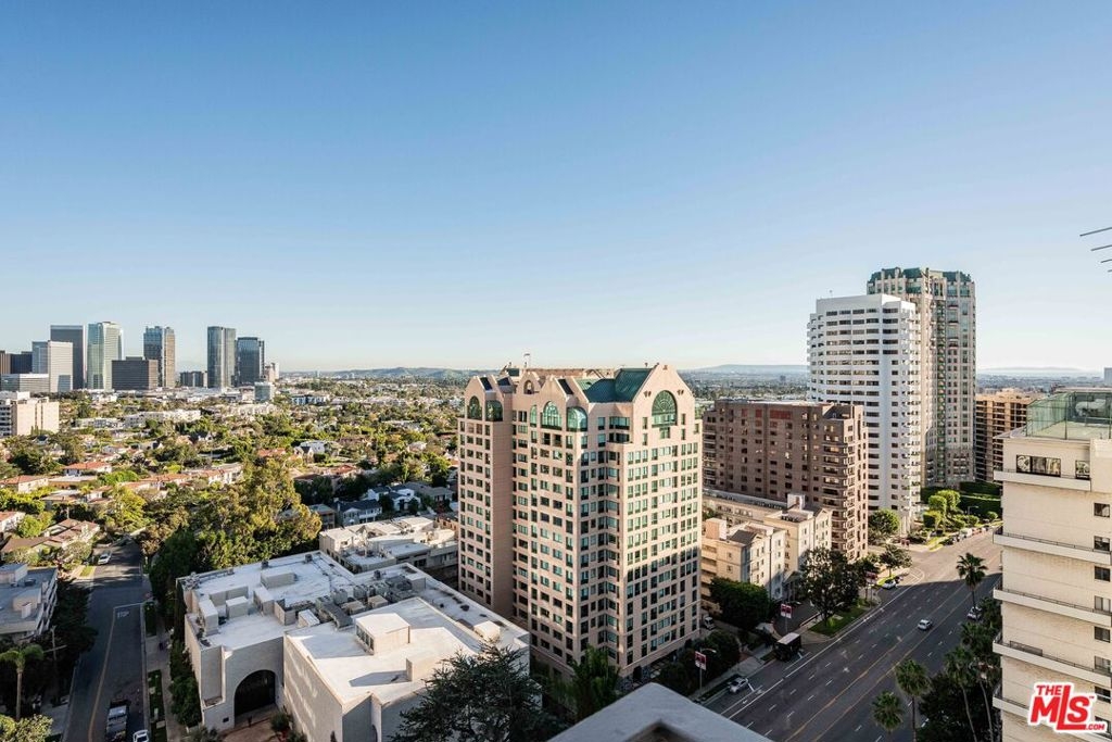 Breathtaking panoramic views.kitchen offering quartz counters, stainless steel appliances.The primary bedroom offers a peaceful retreat with an en-suite bathroom.The second bedroom/den is perfect for guests or as a dedicated home office. city views from every room and south-facing balcony. Residents enjoy the convenience of concierge service, high-speed internet and cable included, a pool, and private storage. Just moments from Westwood Village, UCLA, Beverly Hills, and easy access to the 405.HOA including electric, cable, water.