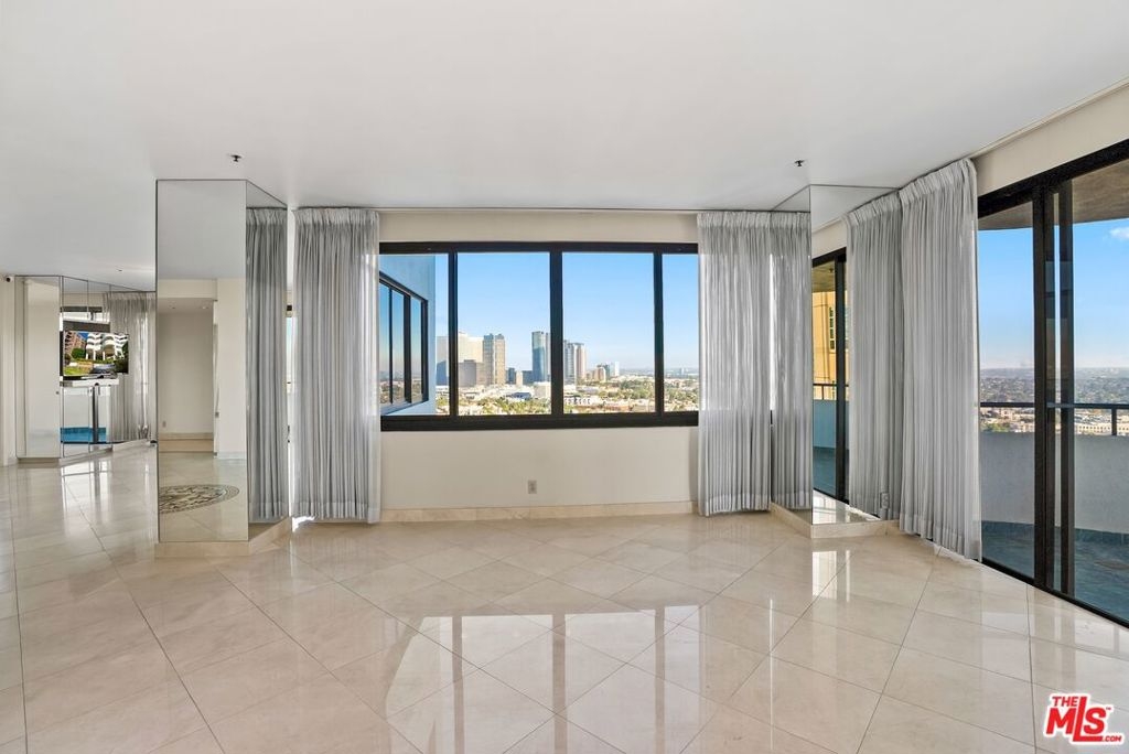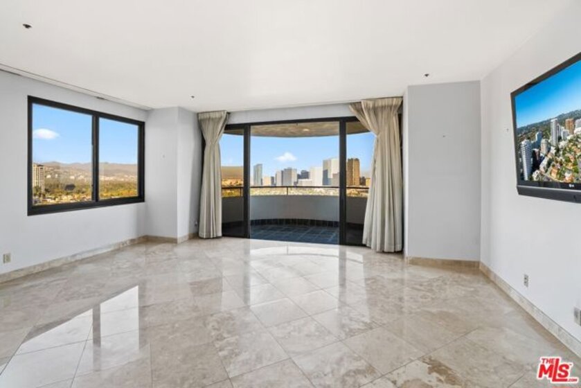 Step into a residence where every glance reveals a view worth remembering. An elegant entry leads to a spacious living and dining area with seamless flow to multiple terraces, ideal for relaxing or entertaining. From the soft glow of afternoon light to the sparkle of city lights at night, enjoy sweeping 180-degree views stretching from the Griffith Observatory to Century City and the Pacific Ocean. With three terraces, there's always a front-row seat to Los Angeles' beauty. The generous primary suite offers a private terrace, abundant closets, and a tranquil retreat. Elegant in scale yet ready for a new vision, this home is a blank canvas to create your own masterpiece. Located on the 18th floor, this prestigious full-service building offers refined amenities including a pool, fitness center, social room, valet service, and 24-hour doorman delivering a lifestyle defined by sophistication, comfort, and unforgettable views.