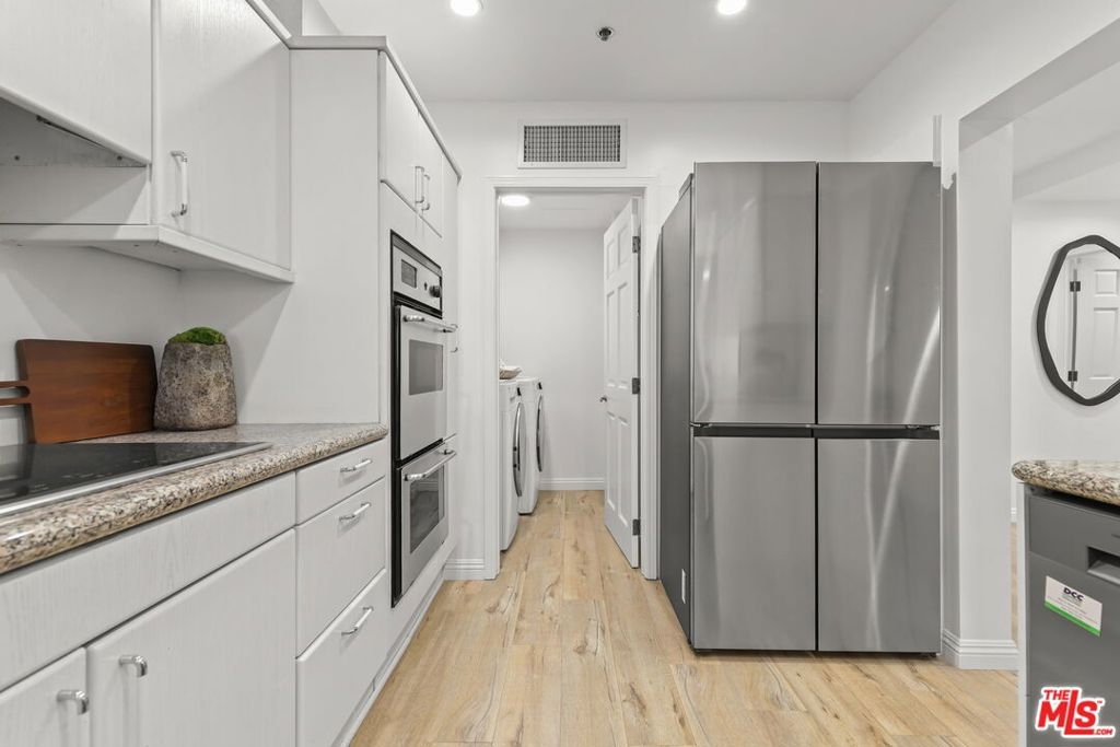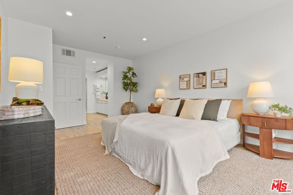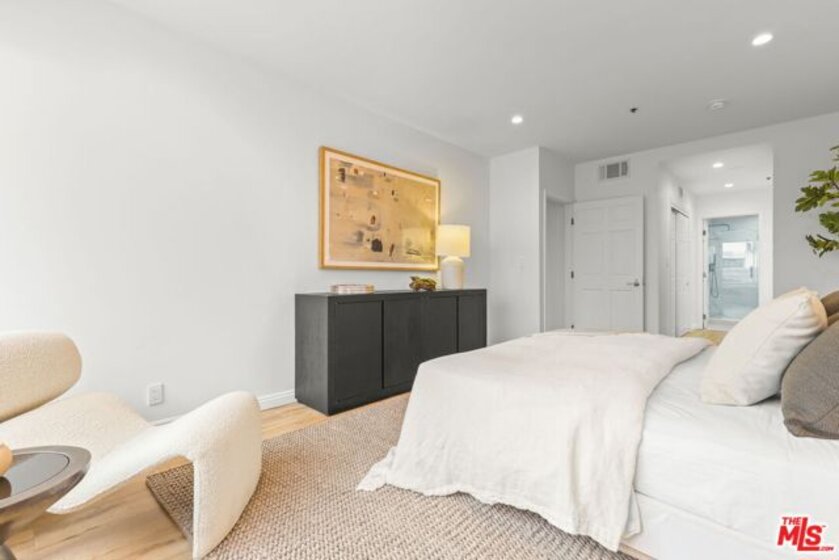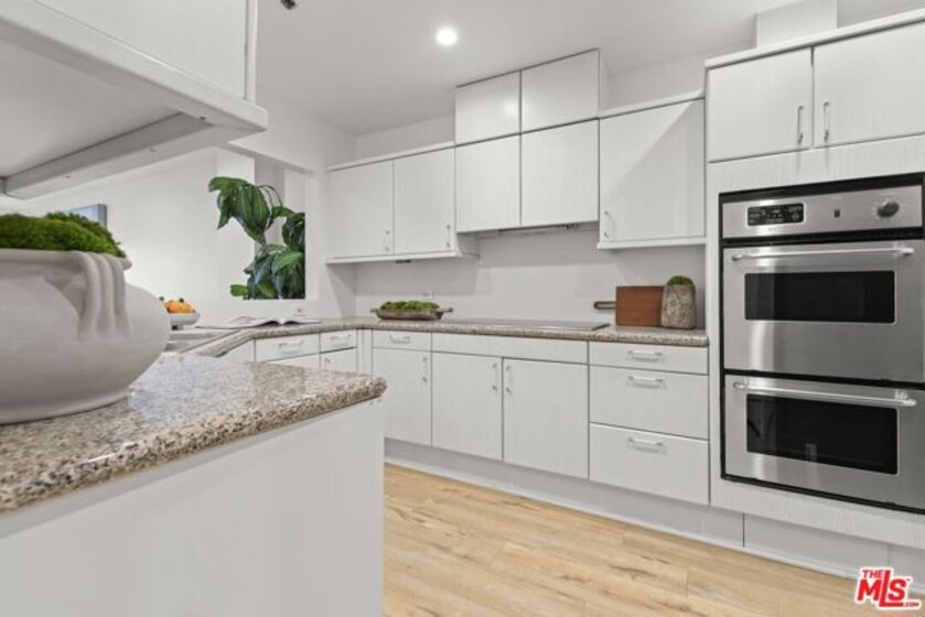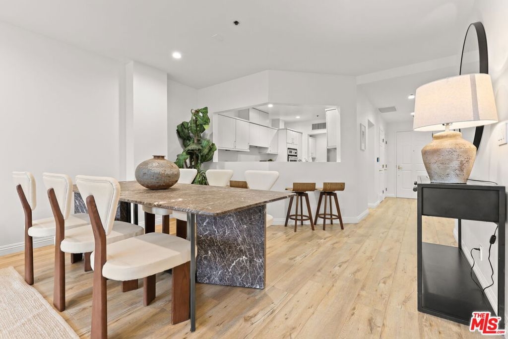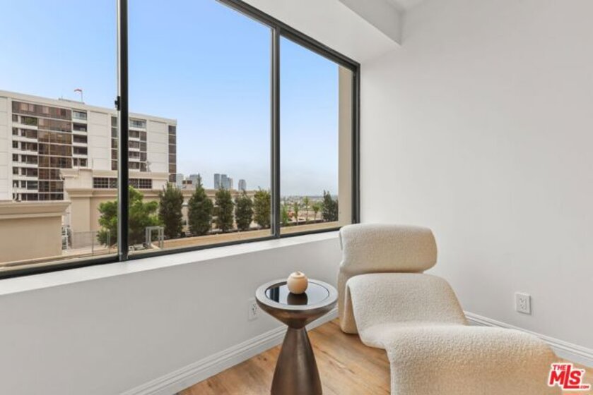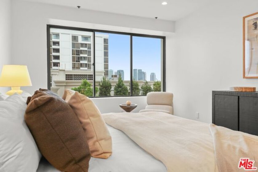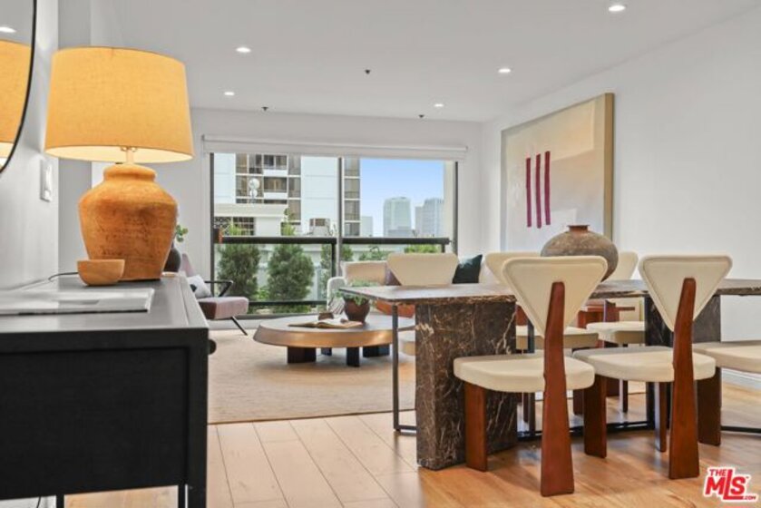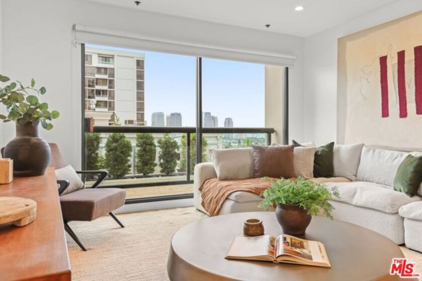 Sophisticated living meets effortless comfort in this expansive one-bedroom residence at one of the Wilshire Corridor's most prestigious full-service buildings. Thoughtfully designed with an open living and dining layout, the home is bathed in natural light through sliding glass doors that frame sweeping city and hillside views. A seamless kitchen with stainless steel appliances and stone counters connects beautifully to the main living space, ideal for both entertaining and everyday living. The oversized bedroom offers a peaceful retreat, complete with a generous walk-in closet and an updated en-suite bath rarely found in comparable units. A guest powder room, dedicated laundry room, and exceptional storage elevate the functionality well beyond the typical condominium experience. Contemporary finishes and a soft, modern palette create a refined yet inviting aesthetic throughout. Residents enjoy white-glove service and resort-level amenities, including a newly renovated lobby, one of the largest fitness centers on Wilshire, a sun-drenched pool and spa, concierge, valet parking, and 24-hour security, all moments from Westwood, Century City, Beverly Hills, and UCLA.