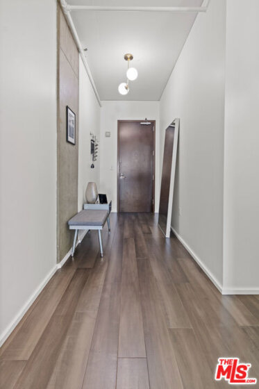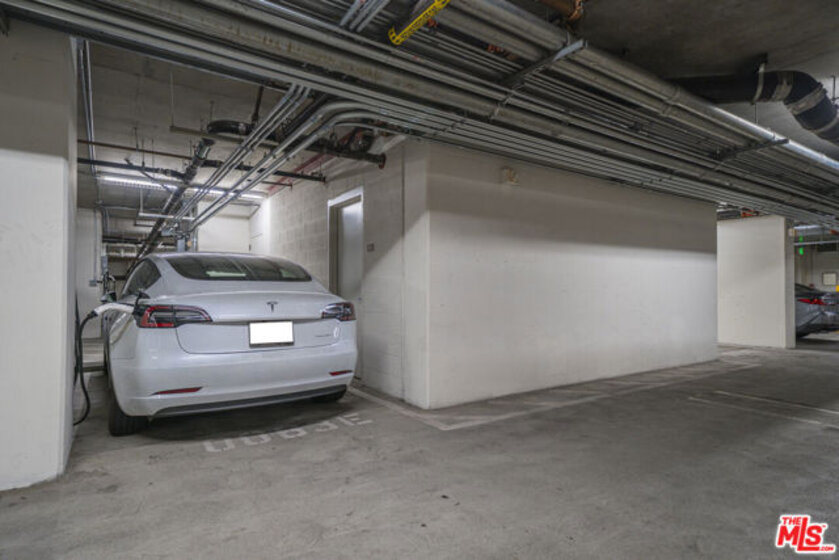 Xtra Large living space, many upgrades throughout, includes a separate storage unit next to your parking space, AND a dedicated EV charger. Rare opportunity to own one of the largest and most livable one-bedroom, one and a half bath units at Elleven in DTLA's Social District. This wide and open floor plan offers true comfort and functionality, with soaring ceilings, engineered maple hardwood floors, expansive east-facing windows, and glass doors that open to a Juliet balcony for fresh air flow and unobstructed park and city views. The spacious kitchen with vented range connects seamlessly to the oversized living area, ideal for both entertaining and everyday living. Bathrooms have been updated, and the custom walk-in master closet with shelving and mood lighting is a showpiece. A larger utility room with designer shoe racks, full-size vented washer/dryer, and a 3-year-old AC system add to the livability and convenience. One parking space with EV charger and a large storage unit located next to parking are also included. Elleven is a modern, full-service high-rise with 24-hour front desk and security, on-site management, and a 4th-floor terrace featuring Viking BBQs, pool, spa, fire pit, and lounge areas. Steps to Crypto.com Arena, LA Live, the Convention Center, Whole Foods, coffee shops, Pine & Crane, Prank Bar, and the weekly Saturday Farmers Market. Close to Pico Metro, FIDM Park, and USC, this location keeps you connected to all of DTLA. With excitement building for the 2026 World Cup, 2027 Super Bowl, and 2028 Olympics, downtown is on the rise. This rare, larger residence at Elleven offers the lifestyle, space, and location that set it apart.