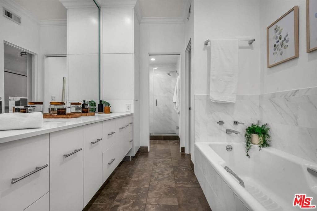 Welcome to this beautifully remodeled condo in one of Brentwood's most desirable locations, boasting a 90 Walk Score to some of the area's best restaurants, cafe's, and markets. Warm, inviting & thoughtfully designed, this home offers gleaming wood floors, recessed lighting, stylish built-ins, & an easy, natural flow throughout. The bright lanai, converted from the original balcony & incorporated into the square footage, creates a lovely bonus living space. Perfect for morning coffee, a home office nook, or winding down at the end of the day. Entertain effortlessly from the breakfast bar, wet bar in kitchen or dedicated dining area. The open chef's kitchen features a 4-burner cooktop, double ovens, granite countertops, stainless steel appliances, wine fridge & ample cabinetry. The layout offers 2 bedroom suites positioned on opposite sides of the unit for optimal privacy. Each bathroom has been beautifully upgraded with floating double vanities, & custom tile. The spacious primary suite opens seamlessly to the lanai & its bathroom features a spa-like bath with a soaking tub, separate shower & generous closet space. Just off the kitchen is your own enclosed laundry room with extra storage. Additional upgrades include a new HVAC system (Fall 2025) & newer water heater, washer/dryer, & refrigerator. The well-run complex offers a newly updated gym with paid Tonal subscription with doors that open directly to the pool for a resort-style workout experience. The elevator received a new operating system in 2023. Two-car covered parking, 6 guest spaces, a large on-site storage unit & a bike room complete this lovely new home.