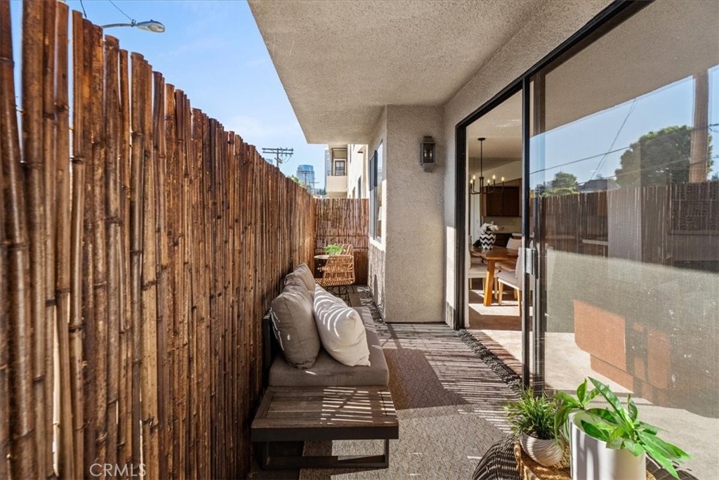 Spacious and bright condo in a prime Beverly Hills adjacent location with an incredibly walkable setting. This 2 bedroom, 2 bath home boasts 1,520 square feet of comfortable living space and is located in Unit 106, one floor above ground level for added privacy and security. The oversized balcony is lined with custom cut bamboo, creating a peaceful outdoor retreat ideal for relaxing or entertaining. Inside, you’ll find new flooring throughout, a fireplace, wet bar, and in unit washer and dryer. Recent upgrades include a new dishwasher, gas range, under cabinet range hood, light fixtures, faucets, toilet, and vanities. The smart layout places bedrooms on opposite sides for enhanced privacy, and the second bedroom has its own private entrance. Community amenities include a pool, spa, fitness room, and sauna, with controlled access and two parking spaces in the gated garage on the ground floor, offering direct, step free entry. Central heating and AC provide year round comfort. The location is unbeatable, just moments from Century City, Roxbury Park, Rancho Park, Hillcrest Golf Course, and world famous Beverly Drive. This one truly checks all the boxes