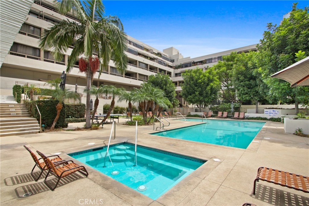 CENTRAL Location between 101 and 110 Freeway. First floor walking distance to restaurants such as Bak's Kitchen, Subway Sandwich, Au Lac Vegan, Cafe Persona. Short distance to World Famous Walt Disney Concert Hall, The Board Museum, Dorthy Chandler Pavilion. Building has 24 Hours Security, Swimming Pool, Spa, Gym with Cable TV. Both bedrooms have ccess to patio with view of The Promenades Court Yard.