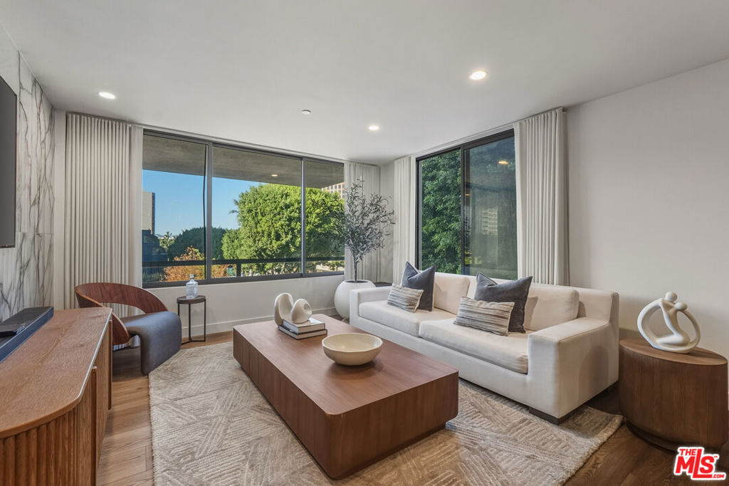Set within one of Downtown Los Angeles's most prestigious luxury communities: The Promenade Residences, this beautifully renovated corner residence pairs Bunker Hill's storied charm with contemporary luxury showcasing a complete, tastefully executed renovation with no expense spared. Built in 1980 during the neighborhood's transformation into LA's cultural and civic center, The Promenade remains a cornerstone of refined urban living, just steps from the Music Center, Disney Concert Hall, and the heart of DTLA. Inside, the home has been thoughtfully reimagined. The brand-new kitchen features custom cabinetry, upgraded appliances, a marble backsplash, quartz countertops, and a center island ideal for entertaining and casual seating. All fixtures have been upgraded, while the bathrooms showcase refined porcelain tile finishes. Wide-plank engineered wood flooring runs throughout, creating warmth and continuity. This sun-filled corner unit offers open cityscape views and abundant natural light, enhancing the sense of space throughout. Two generously sized bedrooms provide comfort and flexibility, making the home as functional as it is beautiful. Completely turnkey, the residence seamlessly blends timeless architecture with modern design. Promenade residents enjoy a full-service lifestyle with 24-hour security and concierge service, an on site market, outdoor pool and spa, fitness center and sauna, on-site management, guest parking, garage access, and lush landscaped gardens and courtyards, including a dedicated on-site dog park. A rare opportunity to own a sophisticated, move-in-ready home in one of Downtown LA's most historically significant residential communities.