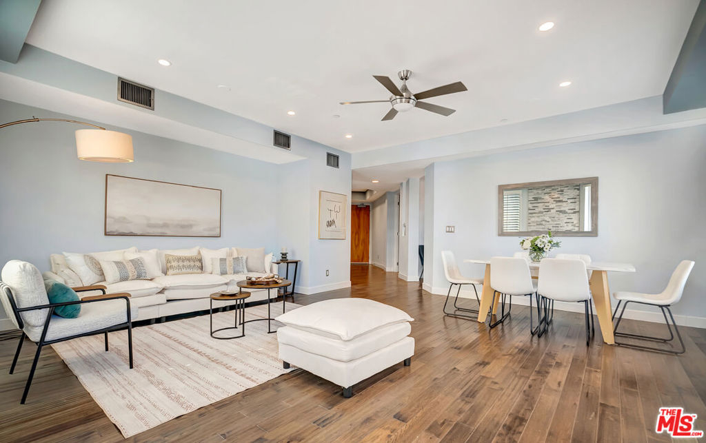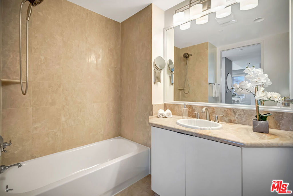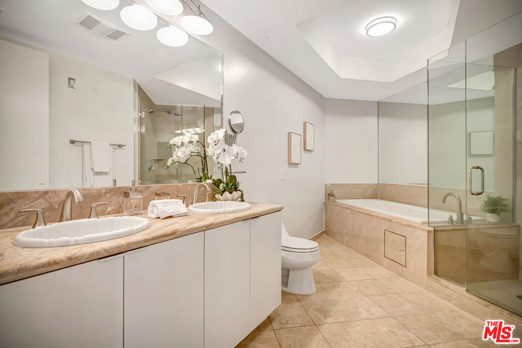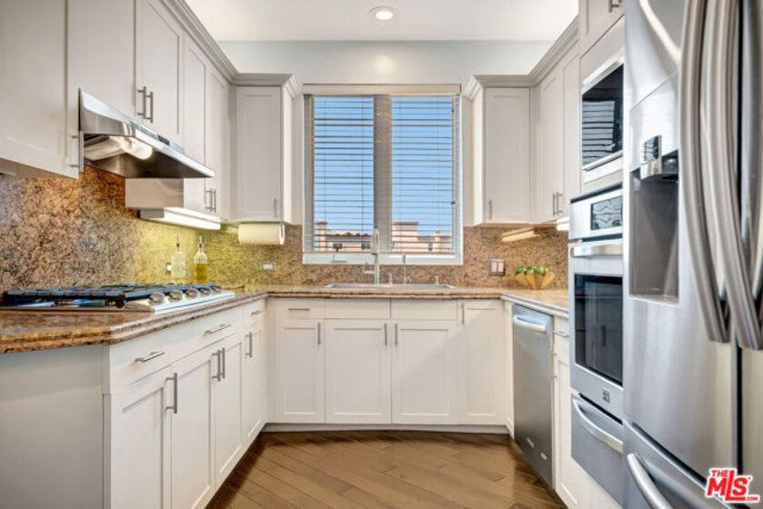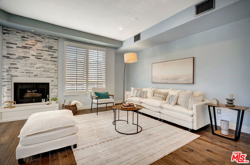 City energy outside. Comfortable living inside. Brentwood West Los Angeles at the Wilshire Borgata combines bright light filled open interiors, an efficient layout, and the benefits of a full-service building. Natural light moves through the main living space, where high ceilings, recessed lighting, engineered wood flooring, and a fireplace create an environment that feels open, comfortable, and effortless. The private balcony garden brings in the rhythm of Wilshire Boulevard and the surrounding cityscape, delivering a cosmopolitan feel. The kitchen is streamlined and practical, with updated appliances, solid storage, and a cozy eat-in bistro dining area designed for comfort. The primary suite is spacious and private, complete with its own fireplace, walk-in closet, and en-suite bath with soaking tub and easy entry separate shower. The secondary bedroom works well for guests, workspace, or flexible use and large enough for a King Size bed with still a lot of extra room left. Additional highlights include a single-level floor plan, central heat and air, private locked storage, two side-by-side parking spaces, and a full-size in-unit washer and dryer. The Wilshire Borgata offers controlled access, daytime doorman service Monday through Friday from 8 AM to 3 PM, pool and spa, fitness center with sauna, recreation and meeting spaces, guest parking, electric vehicle charging, and earthquake insurance. With nearby cafes, dining, 1 block from Ralphs and neighborhood conveniences, including a restaurant located in the building, and less than 10 minutes from the beach and ocean, the location supports walkable West LA access. Full-service comfort and daily ease.