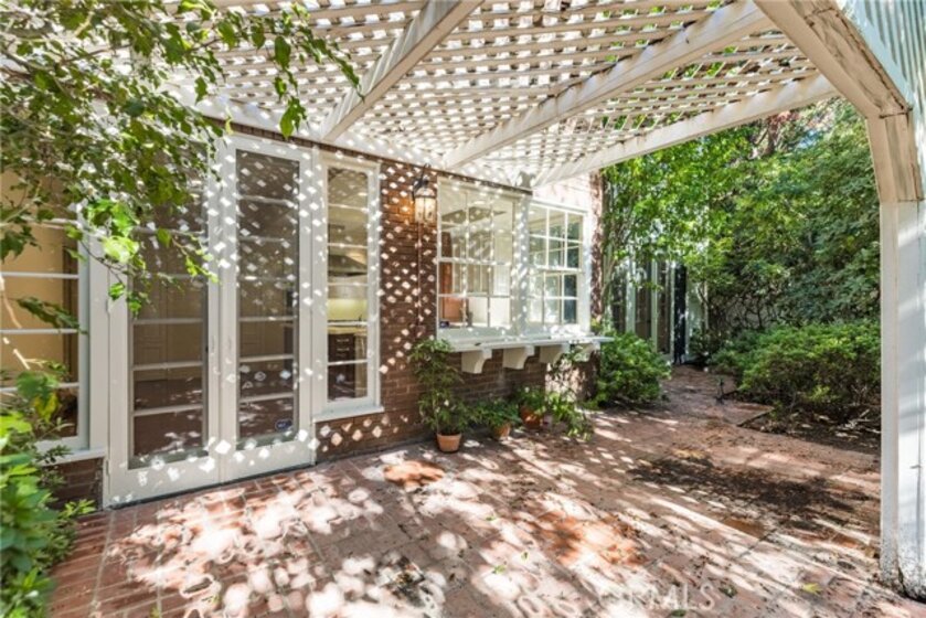 This exceptional 3-bedroom, 4-bathroom 4,018 square foot corner townhome delivers resort-style living in the highly desirable guard-gated Ridge area of Mountain Gate in Brentwood Hills. Located in a very secluded area with 24 hr. security and unmatched serenity. Stanley Kramer, American Film Director, was the original owner of this property set behind a private iron gate with a beautiful courtyard offering complete privacy with only one common wall. This lavish home boasts a formal entry, dramatic staircase, expansive living room with fireplace, wet bar, soaring vaulted ceilings, floor-to-ceiling luminous windows, and elegant French doors displaying a well-manicured wrap-around yard and patios that are perfect for entertaining or quiet relaxation in a zen-like atmosphere with mature trees and koi pond. Spacious eat-in kitchen featuring Miele refrigerator, Wolf dual-convection ovens, Bosch dishwasher, two walk-in pantries and center island. The kitchen has easy access to the formal dining and living areas. One bedroom with ensuite bathroom is conveniently located on the first floor. Additional highlights include a library with fireplace and its own private patio, a dedicated laundry room and a double-attached garage with direct access to the home. Upstairs, retreat to an over-sized luxurious primary suite with a sitting area and a private Juliet balcony with tree-lined views. A huge spa-like bath offers a soaking tub, dual vanities, and a separate shower and bidet. Separately located upstairs is a private 2nd bedroom that has easy access to a full bath. The HOA includes community Pool/Spa, Trash Valet, exterior EQ and Fire Insurance as well as roof coverage. You will have the option to join Mountain Gate Country Club that offers golf, tennis, spa and dining. Easy 405 Freeway access, shopping, dining & spectacular hiking trails. Enjoy the tranquil, resort-like lifestyle and make this stunning colonial-style home yours. Call for a private showing.