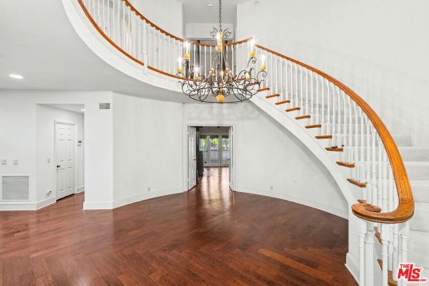 24HR guard-gated security, over 4,000 sq ft of expansive living space, and a serene wraparound yard make this end-unit townhome at the Ridge in Mountaingate one of Brentwood's most compelling opportunities. Rarely available, this desirable corner residence offers 3 BR's + DEN and 3.5 BA's, along with exceptional Westside value at just $667 ppsf! A stately brick facade welcomes you inside to a warm, inviting interior filled with natural light, huge wraparound windows, and soaring double-height ceilings. The grand rotunda entry, highlighted by a gracious circular staircase, sets a tone of elegance throughout. Perfect for entertaining, the impressive formal living room offers generous seating areas and flows seamlessly into the spacious formal dining room, which easily accommodates large gatherings and both rooms open to the yard for effortless indoor-outdoor living. The beautifully remodeled kitchen is well designed featuring finely-finished Silstone countertops, custom cabinetry, Miele and Wolf appliances and a large eating area that opens to a charming patio. A versatile downstairs den works perfectly as a home office, media room, or library. Upstairs, two oversized bedroom suites provide exceptional comfort. The luxurious primary suite offers abundant closet space, a spacious bath, and plenty of room to relax and unwind. A second upstairs suite features a large walk-in closet and private bath. On the main level, a third bedroom suite is ideal for guests. The wraparound yard is a true garden retreat, with grassy lawn areas, a soothing fountain, and mature trees creating a private park-like setting. Additional highlights include a double attached garage, laundry room, and guest powder room. With its grand scale and timeless layout, this special home is your blank canvas - peel away the wallpaper, update the baths, and reimagine the interiors to reflect your own style! And, great schools - Roscomare, Paul Revere and Palisades High, plus numerous private schools are conveniently located. Once the home of famed Hollywood director Stanley Kramer, the community is known for its long history of celebrity residents. HOA dues include exterior structural maintenance, roof coverage, trash-can services, common area landscaping, and fabulous community pool and spa. Best of all, enjoy the peace of mind of 24-hour guard-gated security with hourly roaming patrol. Experience the tranquility of life 'above it all' in Mountaingate, one of the Westside's most charming resort-like communities, surrounded by scenic hiking trails and the renowned Mountaingate Country Club offering optional golf, tennis, and social memberships, plus a fabulous resturant with all-day dining. Close to UCLA, USC, and all of the Westside and Valley finest dining & shopping. An ambiance like this is rare to find on the Westside, make it yours today!