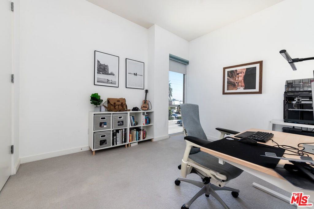 Discover contemporary living at its finest in this stunning modern architectural condo, ideally situated in the heart of Mar Vista. This spacious corner unit offers 3 bedrooms and 2 baths with an open-concept layout, soaring ceilings, and an abundance of natural light that accentuates its sleek, sophisticated design. Every detail has been thoughtfully curated with high-end custom upgrades, including designer flooring, built-in shelving, stylish wall finishes, and premium lighting throughout. The gourmet kitchen is equipped with stainless steel appliances including a built-in microwave and seamlessly flows into the expansive living and dining areas, perfect for both entertaining and relaxing. Enjoy the comfort of central A/C, in-unit washer and dryer, and a private balcony ideal for morning coffee or evening sunsets. Additional highlights include two individual parking spaces, guest parking, a large personal storage unit, EQ insurance, and an EV charger upgrade underway for every home for modern convenience. Set within one of LA's most desirable neighborhoods, this residence offers close proximity to the iconic Mar Vista Farmers Market, hip local shops, popular dining, and vibrant community amenities. Experience a lifestyle of modern elegance and Westside ease in this exceptional home.