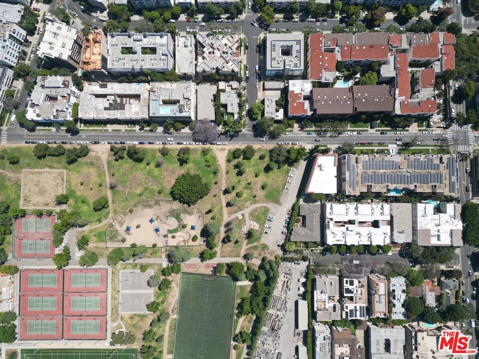 Step into refined Westwood living with this captivating two-bedroom, two-level penthouse loft condo, where sophisticated design and resort-caliber amenities create an exceptional lifestyle opportunity in one of the most desirable locations on the Westside. Perched in an exclusive, resort-style building, this end-unit residence offers the perfect blend of style, comfort, and convenience, with only one shared wall, soaring vaulted ceilings, and expansive windows that flood the home with natural light. An east-facing balcony off the main living area provides skyline views of Wilshire Corridor's high-rises, lush treetops, and golden morning sun, making it the ideal spot to enjoy your first coffee of the day or unwind with a glass of wine in the evening. The newly updated kitchen features striking black granite countertops, brand-new stainless steel appliances, an upgraded sink and faucet, freshly painted cabinetry, and modern luxury vinyl plank flooring that brings warmth and texture to the space. The downstairs en-suite bedroom is a quiet sanctuary with high vaulted ceilings, peaceful green views, and enough space to accommodate a king or California king bed. The adjoining bathroom features rich travertine tile floors and countertops, with a shower over tub for both functionality and relaxation. A spiral staircase leads to an airy and flexible loft space, ideal for a home office, guest bedroom, or creative studio, complete with custom wood Shoji screen sliders that allow for full privacy or open connection to the space below, offering versatility to match your lifestyle. Throughout the unit, you'll find thoughtful upgrades including Restoration Hardware lighting fixtures, brand-new carpeting, fresh interior paint, all new electrical outlets and light switches, a new wall-mounted air conditioning and heating unit in the living room, and a new electric wall heater in the primary bedroom. The unit also comes with what is widely considered the most valuable deeded parking space in the building, a massive end-unit tandem space that easily accommodates two oversized vehicles, making it a rare find for car enthusiasts or anyone seeking convenient, stress-free parking. Beyond the home itself, residents of this community enjoy an unparalleled amenity package, including a newly renovated fitness center equipped with Peloton and Precor machines, a relaxing steam room and sauna, a heated pool and spa surrounded by tranquil landscaping, koi ponds, waterfalls, and multiple outdoor seating areas for lounging or socializing. Indoors, a beautifully appointed clubhouse with a catering kitchen, plus a separate media lounge with TV, provide inviting spaces to entertain or unwind. Added security and ease of access come with recently upgraded fob-controlled entry to all common areas, while on-site EV charging stations, bike storage, and multiple laundry options support a modern, connected lifestyle. Located directly across the street from a sprawling park with tennis courts, basketball courts, soccer fields, and a dog park, this location offers active outdoor living just steps away, and provides effortless access to UCLA, Westwood Village, Century City, Beverly Hills, and the upcoming Purple Line subway station, making this both a prime investment and a peaceful retreat. The HOA dues include electricity, water, trash, and earthquake insurance, offering both value and peace of mind. Whether you are searching for a luxurious primary residence, a stylish pied--terre, or a smart investment property in one of LA's most dynamic neighborhoods, this loft is truly one-of-a-kind, blending comfort, character, and convenience in a setting that feels like an urban sanctuary. Don't miss your chance to own this rare gem in the heart of Westwood's most exclusive condo community.