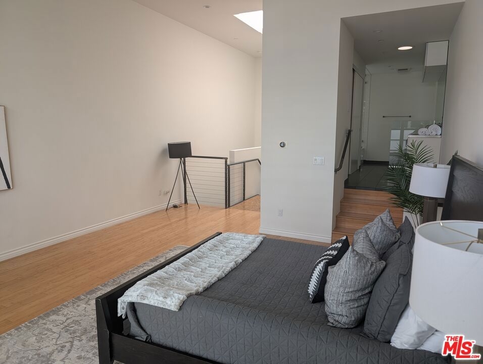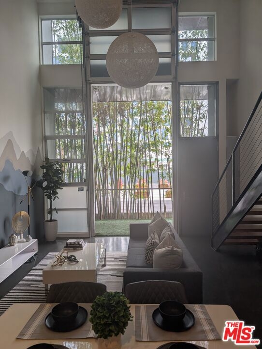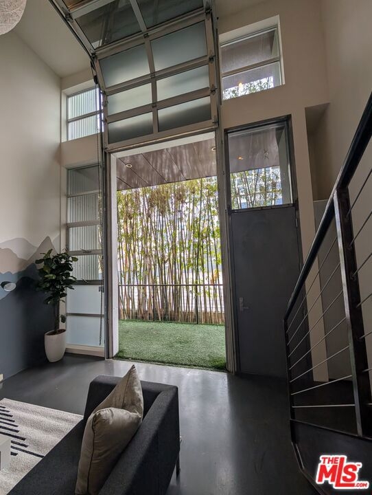 MAJOR PRICE IMPROVEMENT. Experience urban living at its finest in this stunning townhome-style loft, designed by award-winning architect Pugh Scarpa, AIA. Nestled in the vibrant Hollywood 2.0 district, this contemporary residence is a private and sophisticated urban oasis. The gallery-like living room impresses with 19-foot ceilings, sleek concrete floors, and an expansive glass garage doora defining feature of this dynamic space. When closed, the tinted glass ensures privacy and tranquility; when opened, it seamlessly extends your living area to a private patio, inviting fresh air and natural light. A bright and airy mezzanine on the second level offers the perfect home office, cozy den, or additional bedroom. The top-level primary suite is a true retreat, featuring floor-to-ceiling windows with breathtaking views of the Hollywood Sign. Located in the heart of Hollywood's thriving scene, enjoy unparalleled access to Equinox, Trader Joe's, NeueHouse, and the Arclight Theater. Plus, with the Metro Red Line and 101 Freeway just minutes away, commuting is effortless. Come see this exceptional home for yourself - urban luxury awaits!