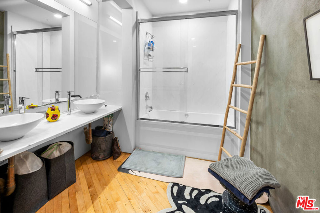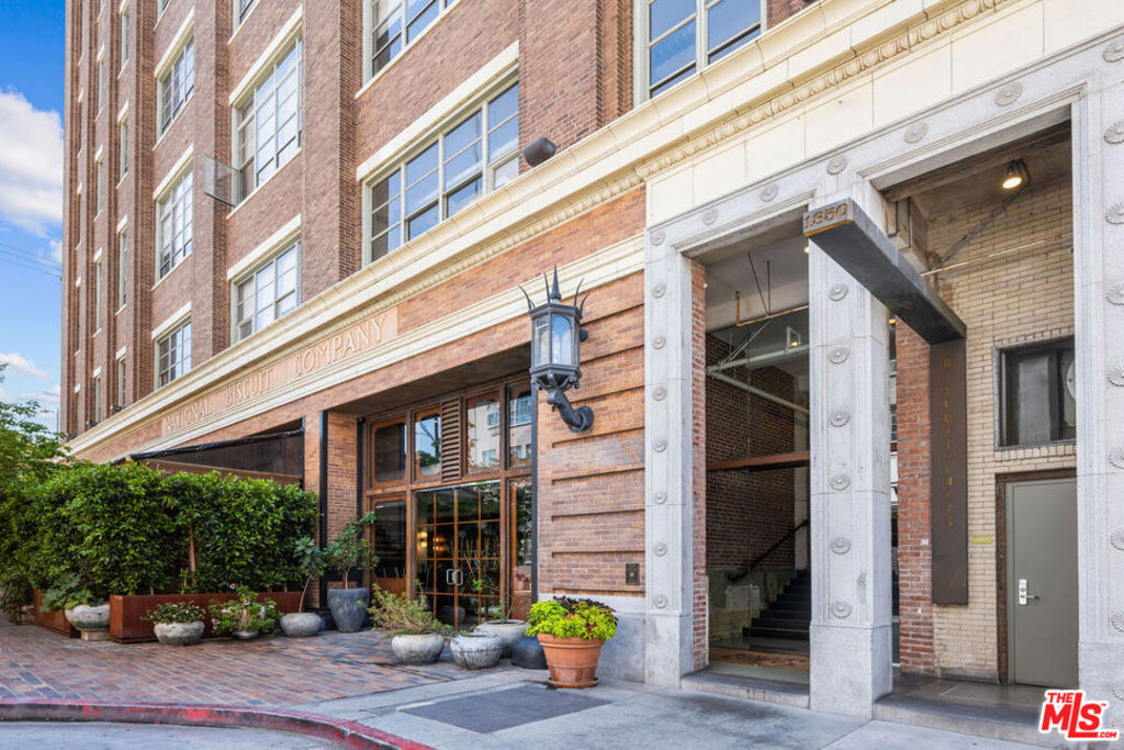 Historic-Cultural Monument no. 888, Built in 1925 by Eckel and Aldrich, Architects in the Beaux-Arts style. Dramatic designer space with very rare roll up exterior door in the highly sought after Biscuit Company Lofts. Encompassing over 1,100 square feet in the DTLA Arts District, Unit 110 marries the drama of its industrial past with chic modern finishes and amenities. The space offers voluminous concrete high ceilings, exposed brick wall, hardwood floors throughout, stainless steel kitchen and marble elements in the bathroom. Enjoy substantial property tax breaks due to Mills Act designation. Blocks from SoHo House, Maru Coffee, Bavel, Bestia, The Good Liver, Everson Royce Bar and an endless roster of the cities best restaurants, coffee shops, boutiques and nightlife. The building offers a sun drenched pool and outdoor lounge area, fitness room, front desk and concierge. One deeded parking space included in sale.