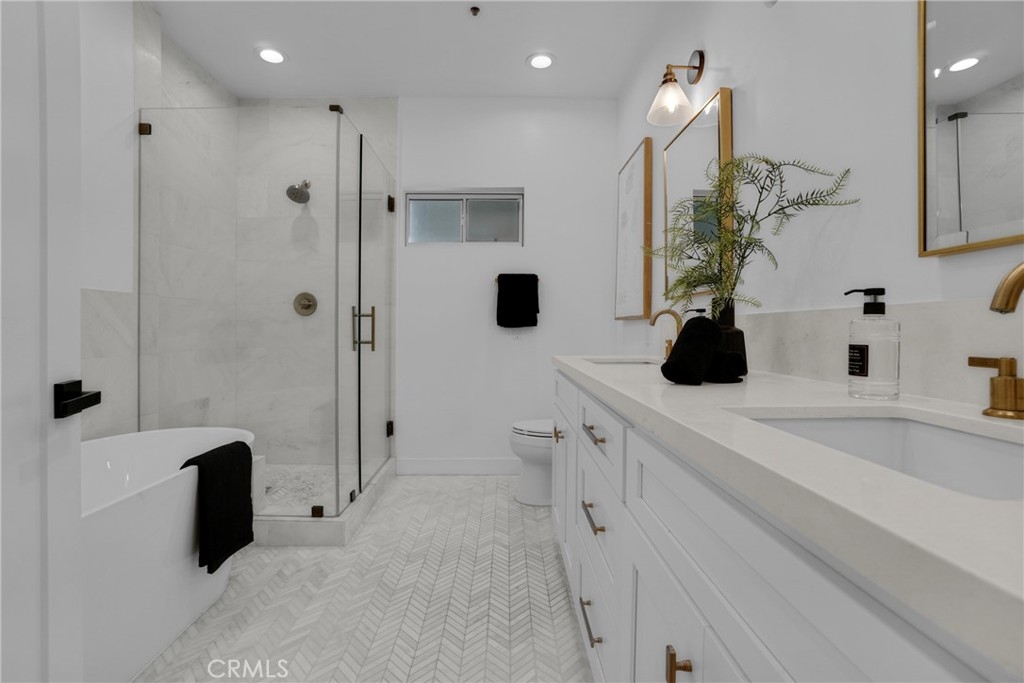 Stunning remodeled condo in a prime location! No detail was overlooked in this beautifully upgraded modern end unit, perfectly positioned to span the length of the building, offering exceptional privacy and an abundance of natural light through additional windows. The open-concept floor plan features a spacious living room with recessed lighting and a cozy fireplace, seamlessly flowing to an expansive private balcony...perfect for relaxing or entertaining. The gourmet chef’s kitchen is a true highlight, showcasing newer stainless steel appliances, sleek finishes, and ample cabinetry. Luxurious primary suite, complete with a spa-inspired ensuite bathroom featuring a freestanding soaking tub, dual vanities, and elegant stone. Enjoy the convenience of oversized dual closets and French doors that open to a private patio. Additional features include a custom-built workspace ideal for remote work, in-unit washer and dryer, and a newer HVAC system for year-round comfort. Ideally located just minutes from dining, theater, UCLA, Westwood, Westfield Shopping Mall, Sawtelle Blvd and much more!! This luxurious condo truly offers the perfect blend of style, comfort, and convenience!