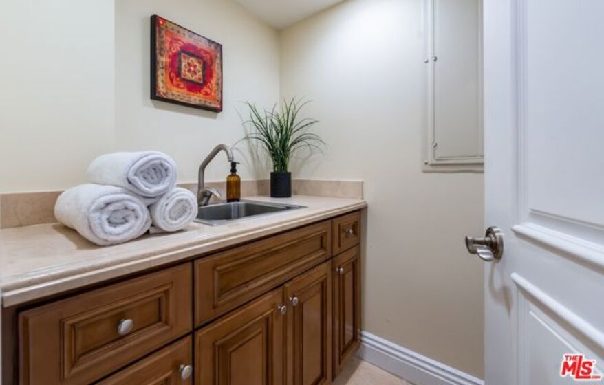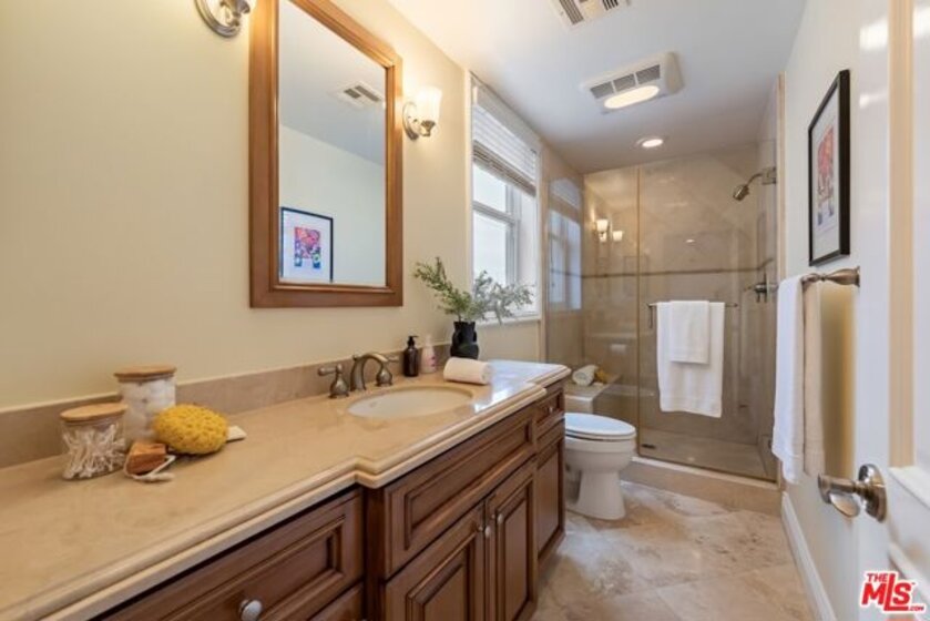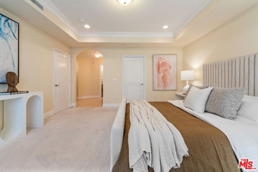 Nestled between Westwood and Century City - and a stone's throw from Westwood Charter, this Mediterranean-inspired townhome is one of only six in a private, secure enclave. Spanning 2,496 square feet across two levels, it offers the scale and comfort of a single-family residence with the ease of condominium living. A grand living room with soaring 18-foot ceilings and walls of glass sets the tone, filling the home with natural light and creating an airy, elegant ambiance. French doors open to a serene patio, blending indoor-outdoor living for intimate gatherings or relaxed evenings. The chef's kitchen, complete with Viking appliances, granite countertops, and custom cabinetry, is ideal for both culinary pursuits and casual entertaining. Upstairs, the expansive primary suite offers a tranquil retreat, featuring two walk-in closets and a luxurious en-suite bath with soaking tub. Two additional bedrooms provide versatility for family, guests, or a home office. Warm architectural details and timeless finishes create a sense of sophistication and ease throughout. Residents enjoy the peace of a secure, gated building entrance and parking, all within moments of award-winning Westwood Charter Elementary, the world-class shopping and dining of Century City, UCLA, and the best of West LA. Combining Mediterranean charm, generous scale, and a coveted location, this exceptional residence presents a rare opportunity to enjoy refined living in one of Los Angeles' most desirable neighborhoods.