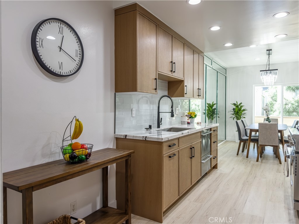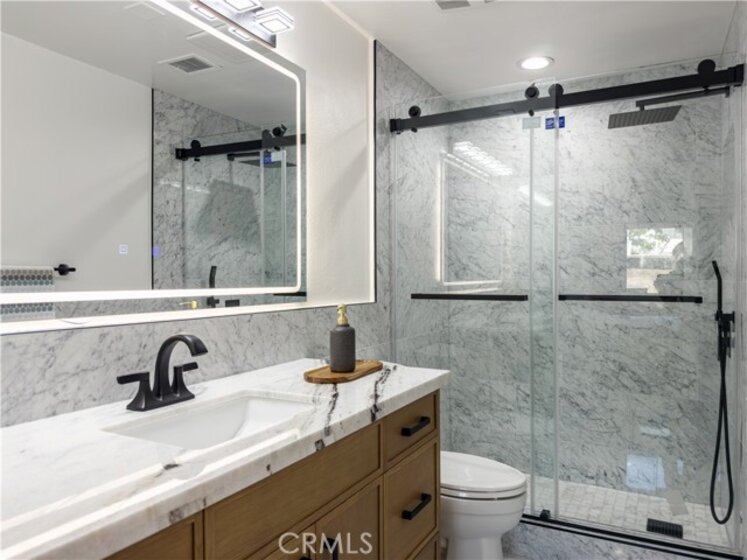 Sellers are open to assisting buyers with an interest rate buy-down. Best value per sqft for a beautifully remodeled 2-bedroom, 2.5-bath condo in prime Westwood location. All work was completed with permits to ensure quality and compliance. Features include 8mm waterproof SPC vinyl flooring with 12mm underlayment, new double-pane windows and sliding door, recessed lighting with dimmers, and a marble-faced fireplace. The bathrooms showcase marble floors and backsplash, custom vanities with granite countertops, Kohler faucets, 12" rainfall showers, LED mirrors with defrost, and Kohler toilets. The modern kitchen boasts frameless cabinets, granite countertops, glass tile backsplash, and high-end appliances including a 36" American Range 6-burner (ARROB366-N), 42" ZLine range hood (619-42), GE Profile built-in microwave (PWB7030SLSS), Fisher & Paykel counter-depth French door refrigerator (RF170ADX4N), stainless-steel dishwasher, and Kohler faucet. Additional highlights include central air/heat, in-unit laundry room, balcony off the living room, optional no-stairs access from garage to the unit via elevator in the lobby, gated 2-spaces tandem parking, and community pool, spa, and clubhouse. Located in the desirable Westwood Charter school district, just minutes from UCLA, Century City, and Beverly Hills.