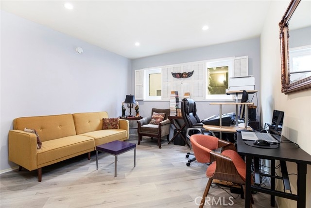 Renovated with panache! This corner, sun-filled, spacious two-bedroom condo is located in the trendy Franklin Village of Hollywood. It is a front facing unit which has only one adjoining wall and feels like a small house with separate foyer, large living room, wood/gas fireplace, dining area, recessed lighting throughout and private balcony. It boasts a remodeled kitchen with quartz countertops, dishwasher, microwave, water purifier and breakfast bar and has new flooring, windows, air-conditioning and electric panel. It includes one secured parking space, community laundry room, elevator and storage locker. The complex has a stunning flower-filled courtyard and is pet friendly. The immediate area is in close proximity to hiking and bike trails at nearby Griffith Park. It is one block away from restaurants, hip stores, Gelson’s Grocery Store, cleaners, pet store and hotels. A few blocks from Lazy Acres Natural Market, Beachwood Canyon and the 101 freeway. A fantastic location!