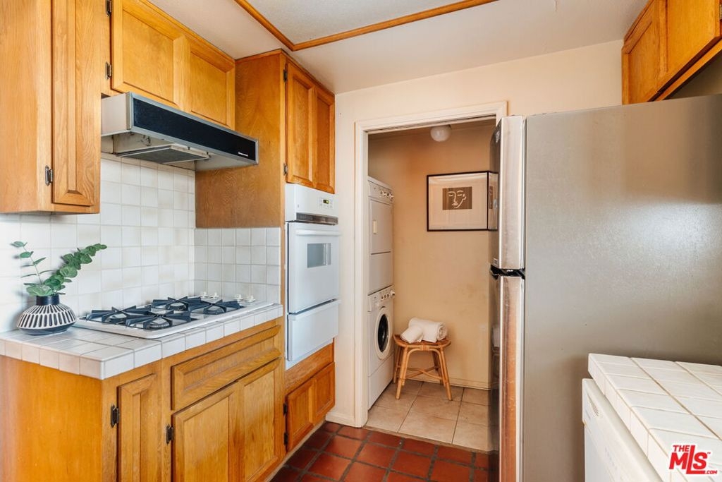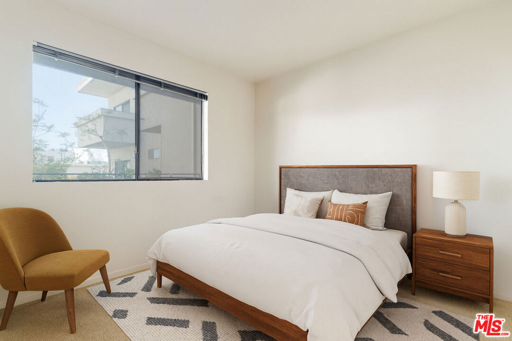 Welcome to an exceptional offering in the highly sought-after Bentley Pines community--a boutique enclave of only 14 residences ideally positioned where West LA and Westwood meet. This generously sized 2-bedroom, 2-bathroom residence features a sun-drenched balcony, in-unit laundry, and a fireplace with a dramatic floor-to-ceiling wood-paneled surround. The open-concept layout is ideal for hosting, as the dining room, living room, and balcony blend seamlessly. Enjoy treetop views of the courtyard from the kitchen, equipped with ample counter and storage space. Down a hallway with linen closets, you'll find the guest bedroom and bathroom, along with the oversized en-suite primary, complete with large sliding glass doors that open to the balcony, two walk-in closets, and a bathroom with a soaking tub and dual vanity. This home is zoned for the highly rated Westwood Charter Elementary and is just moments from UCLA, Westwood Village and the world-class dining, shopping, and nightlife at Century City Mall. HOA includes Spectrum cable and internet, trash and sewer.