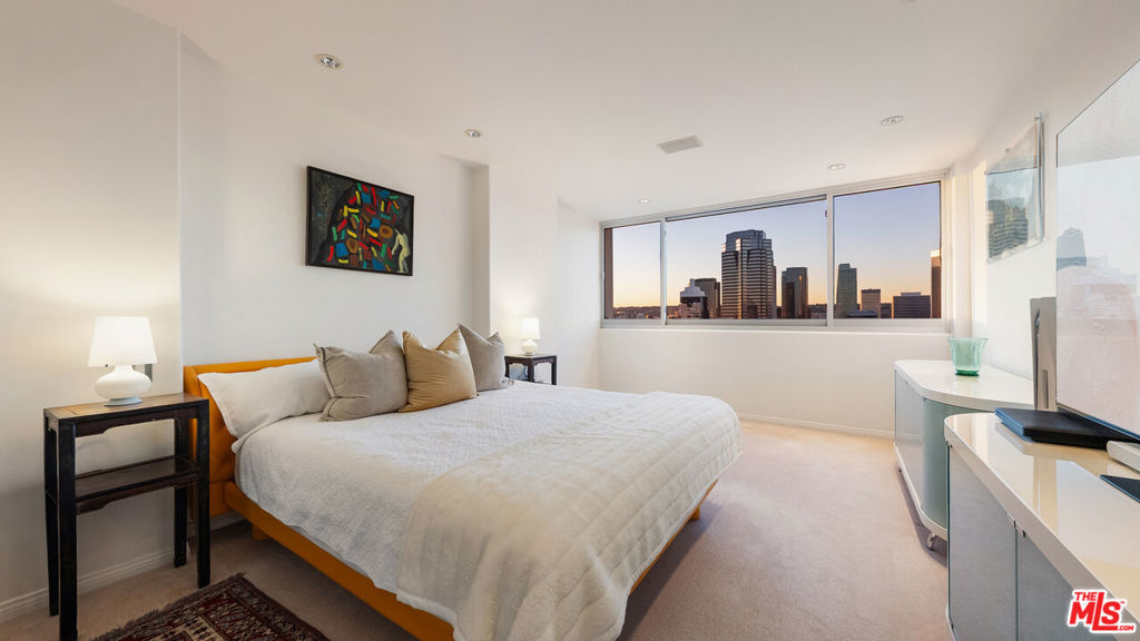 Located in the iconic Century Towers designed by world renowned architect I. M. Pei, Residence 1802W offers unobstructed 270 degree jetliner views and represents a true masterpiece of refined Los Angeles city living. Positioned on the 18th floor, the home enjoys absolute privacy from the neighboring tower, with sweeping vistas extending from the Santa Monica coastline through Century City and Beverly Hills to the rolling Santa Monica Mountains and the Griffith Observatory. Upon entering, you are immediately welcomed by expansive city views from the main living areas, creating a dramatic yet serene first impression, with a full guest bathroom conveniently located nearby for entertaining. Currently configured to maximize lifestyle and hosting, the residence features a spacious primary suite and a second bedroom thoughtfully transformed into a bespoke library and lounge, anchored by a custom bar and wine refrigeration for intimate evenings and gatherings. A quiet luxury aesthetic defines this unit, enhanced by newly installed high performance windows, premium finishes, and a custom steel and stone entry door that opens into a 1,633 square foot floor plan balancing open horizons with privacy and comfort. A high fidelity ceiling audio system is installed throughout the unit. The kitchen is designed with Sub Zero and Viking appliances paired with an Axor semi professional faucet, while the bathrooms have been curated as a wellness retreat featuring a walk in steam sauna with dual shower heads, a therapeutic soaking tub with ionized air bubbles, updated sinks, and Axor fixtures. Residents of Century Towers enjoy a full service, resort caliber lifestyle with a 24 hour guard gated entrance, doorman and valet parking, concierge services, a heated pool, state of the art fitness center, sauna, and tennis courts, offering an unmatched level of service and amenities. This is a rare turnkey opportunity that seamlessly combines architectural pedigree, privacy, and a thoughtfully designed, entertainment focused layout in one of Los Angeles' most iconic residential buildings.
