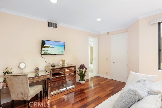 This impeccably maintained, move-in ready townhouse is situated in the esteemed "Century Hill" complex, nestled in Century City's core. The 2-bedroom, 2.5-bathroom unit offers an expansive open layout, featuring a spacious living area with dark brown hardwood floors, recessed lighting and a fireplace. It opens onto a large private patio. The kitchen is equipped with a custom built stainless steel fridge, oven, dishwasher, walk-in pantry, and granite countertops. A breakfast nook and formal dining space adjoin the atrium. Upstairs, you'll find a spacious primary suite with high ceilings, a skylight, and a cozy sitting area by the fireplace, offering stunning city views from its balcony. The primary bathroom showcases separate jetted tub and shower, dual walk-in closets, and more city lights. The second bedroom, equally large, has its own full bathroom with a jetted tub, shower, and skylight. This unique townhouse also offers a large bonus room near the garage. Residents of this community enjoy a wealth of amenities, including round-the-clock guarded entry and security patrols, five swimming pools, hot tubs, illuminated tennis courts, a spacious fitness center, a clubhouse, and a banquet hall with a full kitchen for hosting events. Enjoy beautiful gardens with walking paths. Perfectly positioned between Beverly Hills and Westwood, and close to world-class dining and shopping at Westfield, this prime Los Angeles location offers the pinnacle of luxury living. Close to UCLA and Santa Monica Beach. Experience the finest Century City has to offer in this outstanding residence.