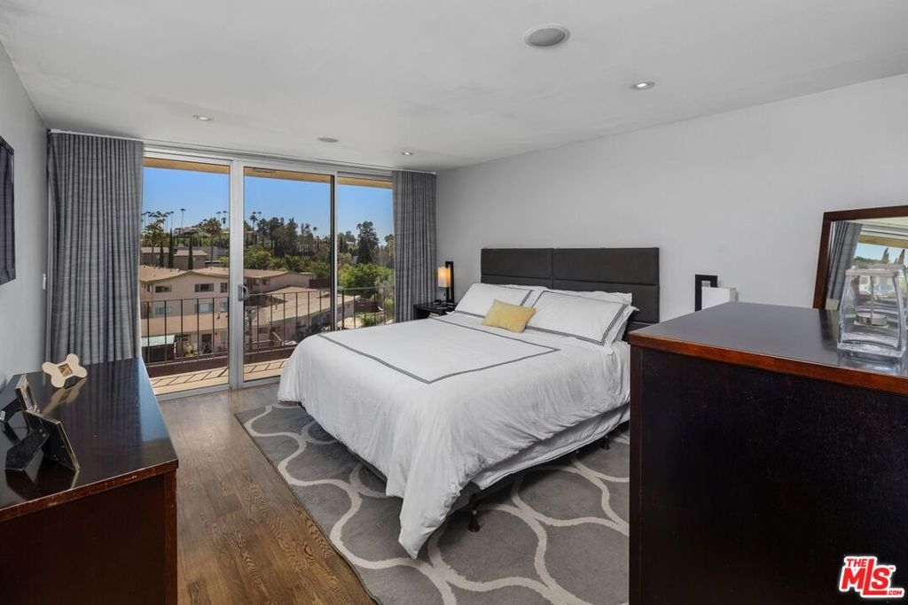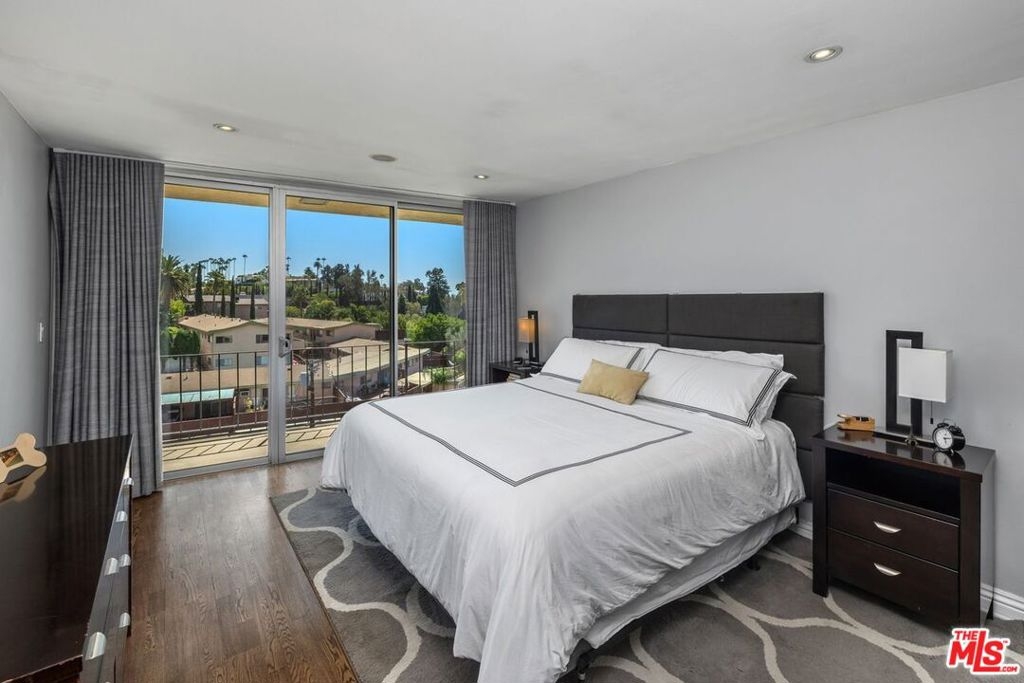 A fantastic opportunity for both buyers and investors to own a beautifully remodeled condominium located at the base of the Hollywood Hills. This bright and sunny two bedroom, two bathroom residence features an open floor plan with a spacious dining and living area, hardwood floors, and central air and heating for year round comfort. The remodeled kitchen is thoughtfully designed with striking green Ann Sacks tile, white granite countertops, generous built in cabinetry, and stainless steel appliances. Sliding doors lead to a private balcony, ideal for al fresco dining or relaxing while enjoying the city lights. The primary suite offers serene views of the Hollywood Hills along with a large walk in closet. The primary bathroom has been tastefully remodeled with Porcelanosa ceramic tile in the shower, a Porcelanosa European style toilet and mirror, and a marble countertop with floating dual sinks. The second bedroom suite is perfect for a roommate, guests, or a home office, and is complemented by a second bathroom featuring a custom granite countertop and Porcelanosa tile in the shower.The unit is conveniently located near Hollywood's vibrant nightlife and restaurants, as well as Los Feliz and Silver Lake, with easy access to local freeways. Nearby amenities include The Oaks Market, Daily Planet Bookstore & Coffee Shop, Gelson's, Bristol Farms, Trader Joe's, and iconic destinations such as the El Capitan and TCL Chinese Theatres. Outdoor enthusiasts will appreciate close proximity to hiking trails at Bronson Canyon, Fern Dell Nature Trail, the Hollywood Reservoir, and Griffith Park. Building amenities include a heated pool, bike storage, barbecue area, and lounging deck. The HOA covers water, trash, gas, and AC electricity. The recently increased HOA fee reflects higher insurance costs and completed balcony retrofitting. This condo may be purchased furnished and offers excellent potential as an income investment. A rare gem with comfort, style, and location.