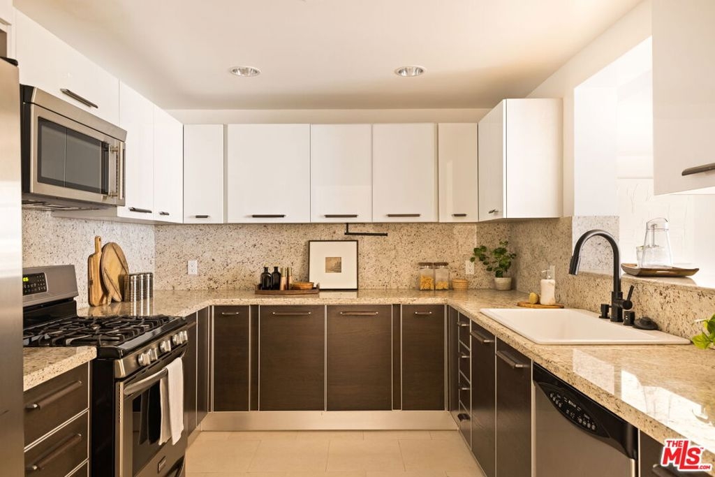 You'll love living here! Located within steps to trendy Robertson Blvd, Alfred Coffee, Beverly Center, Cedars Sinai, and more, this third floor, corner unit is flooded with natural light. A well-designed floor plan features a spacious living and dining area primed for entertaining. The kitchen boasts stainless steel appliances, a farmhouse sink, and modern cabinetry with plenty of storage. The primary suite features a large walk-in closet, soak tub and walk-in shower, while the second bedroom includes its own private balcony. Other key features include in-unit laundry, two balconies and custom closet built-ins in both bedrooms. Built in 2005, Russell Square is an intimate 15 unit building complete with a fitness center and guest parking. HOA includes earthquake insurance, water, trash and common area maintenance.