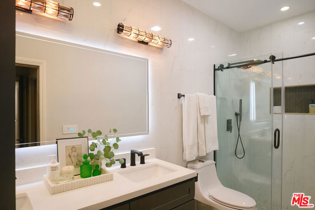 Imagine a life lived above the ordinary, where every day unfolds with effortless elegance. Nestled on the coveted top floor of a private, intimate residence awaits a haven unlike any other. This is not merely a condo; this is a Penthouse Corner Unit where the sky is your only upstairs neighbor, and light pours in like a dream. Step inside and the sheer volume will take your breath away. Soaring ceilings rise to meet the California sun, defining a sprawling, single-story floor plan of nearly 1,300 square feet that feels limitless; a true sanctuary in the Hollywood Hills. The heart of the home is a magnificent, open living space, centered around an inviting gas fireplace, perfect for cozying up after a night out or to lounge by for a quiet night in. The primary suite is a peaceful retreat at the end of a private wing featuring its own separate balcony, a generous walk-in closet, and a spa-like ensuite bath with a dual vanity. Rare and coveted amenities elevate daily life, including an in-unit full-size washer & dryer and two precious, side-by-side parking spaces in the secure garage, with elevator access eliminating a single stair. This is the quintessential Hollywood Hills lifestyle, without the heavy price tag or high HOA. You are mere moments from the magic: concerts at the Bowl, hikes around Lake Hollywood or amongst the iconic vistas of the Griffith Observatory, and endless access to shopping, dining, and nightlife. Stop searching, and start living the life you've only imagined. This unique opportunity - a fully updated, move-in-ready, corner penthouse with every wish-list item checked.