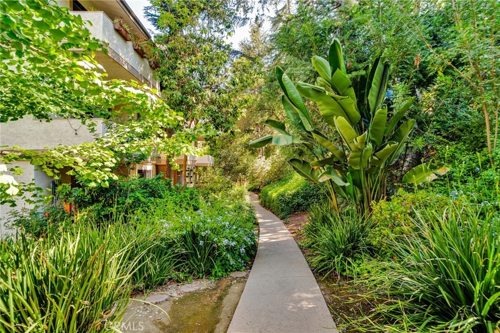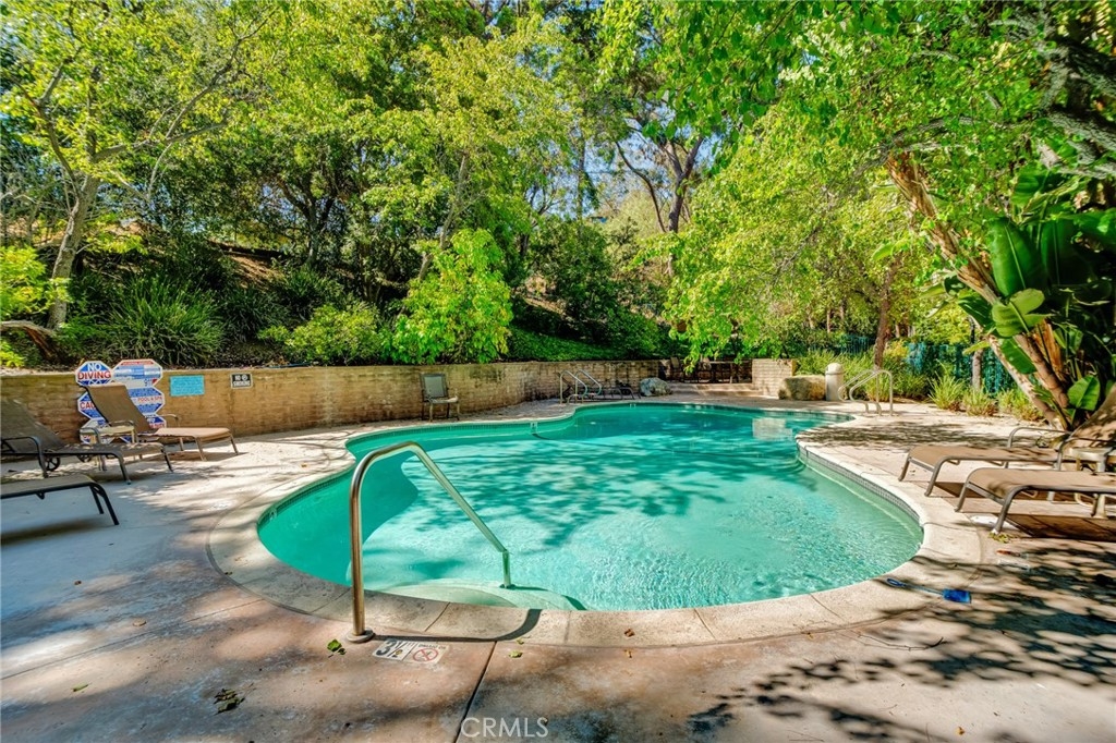 Welcome to this beautifully updated condominium, ideally located in one of the coolest pockets of the Valley—right between Universal and Warner Bros. Studios! Nestled in peaceful natural surroundings, this unique complex backs directly onto trails leading to Griffith Park, the Hollywood Reservoir, and the iconic Hollywood Sign, offering rare, direct access to some of LA's most scenic hiking trails. You'll love the tranquil vibe, towering trees, and sparkling community pool—this is authentic California living. Inside, the home has been thoughtfully refreshed throughout. A brand-new dual-pane sliding glass door and bedroom window enhance energy efficiency and comfort. The remodeled kitchen shines with sleek quartz countertops, a stylish tile backsplash, and new appliances, including a dishwasher, range, microwave, and sink. The bright, open floor plan features new luxury vinyl plank flooring, plush carpeting in the bedroom, fresh interior paint, and smooth ceilings, all of which contribute to a clean, modern feel. The spacious living and dining areas flow seamlessly into a breakfast bar and dedicated dining space—perfect for casual meals or entertaining. The generous primary suite features a walk-in closet and a beautifully updated bathroom with ample storage, as well as new quartz counters and a sink. Step outside to your private deck, perfect for morning coffee or al fresco dining under the stars. Community amenities include secure gated access, peaceful walking paths, and keyed entry to the Wisdom Tree, Tree of Life, and Lake Hollywood hiking trails. Additional highlights include two dedicated parking spaces in a secure garage, as well as ample street parking for guests. All this, just minutes from Warner Bros., Universal Studios, Toluca Lake Village, Studio City, and easy access to the 101 & 134 freeways—offering the perfect blend of privacy, natural beauty, and unbeatable convenience. The pictures have been virtually staged