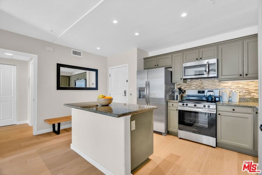 Experience the perfect blend of style, convenience, and modern living with this 1 bed plus 1 bath gem located in the heart of the vibrant Bedford Promenade community. Perched on the 3rd floor, this corner unit offers privacy with minimal shared walls, and an enviable lifestyle, complete with 2 dedicated side-by-side parking spaces and your very own EV charging outlet in the gated parking structure with elevator access. This thoughtfully designed floor plan maximizes every inch of space. Recently updated with chic, contemporary touches, this home features gorgeous new white oak hardwood flooring, a sleek granite kitchen with a spacious island, and new stainless-steel appliances. The newly remodeled bathroom boasts upscale finishes, while the custom closet storage solutions and in-unit washer & dryer (a modest $40 extra monthly HOA fee applies) add practicality to everyday living. A newer HVAC system with a smart thermostat keeps your comfort just a tap away, whether you're home or on the go. The affordable $500 monthly HOA fee also includes water, trash and all exterior maintenance. Relax on the oversized balcony, where serene views of the meticulously maintained common areas and sparkling pool await. The building itself is brimming with additional resort-style amenities to take advantage of including the fitness center and a community room equipped with a pool table that is perfect for entertaining friends or unwinding after a long day. This condo is ideally situated amidst exciting new developments like the upcoming Stocker Street Creative (a state-of-the-art film studio campus) and the Baldwin Hills Mall redevelopment featuring trendy dining and shopping options. It's also minutes from SoFi Stadium, LAX, and neighborhoods such as Leimert Park, Culver City, Ladera Heights, and the Westfield Mall (with Trader Joe's!). For commuters, the proximity to the Metro K-Line station (just .25 mile away) and the Expo/Crenshaw station (1.5 miles away) offers easy access to Downtown LA and beyond. Super clean and move-in ready, this stunning condo is your chance to enjoy spring and summer by the pool while basking in the comfort and convenience of a modern home in a prime location. Don't miss this rare opportunity to own a slice of LA living at its finest.