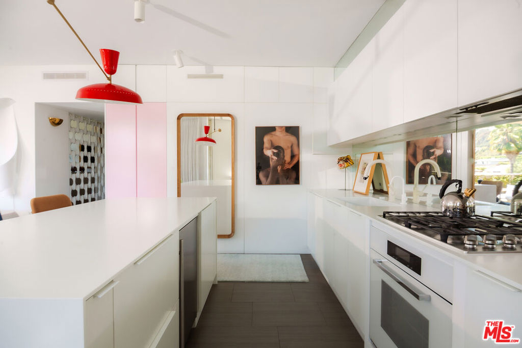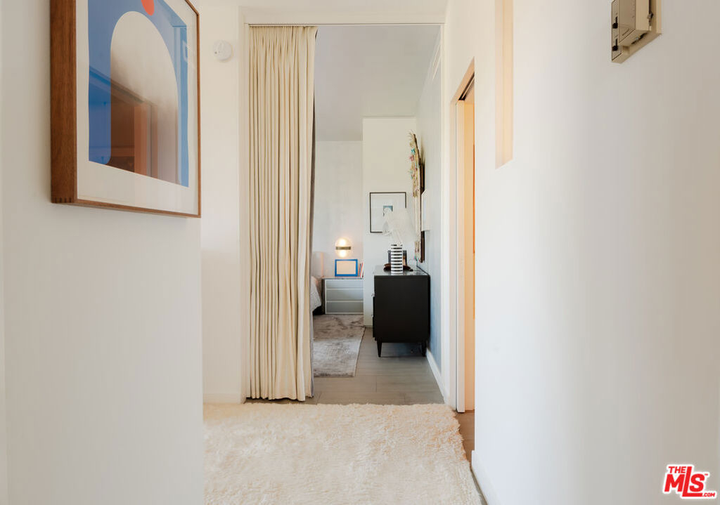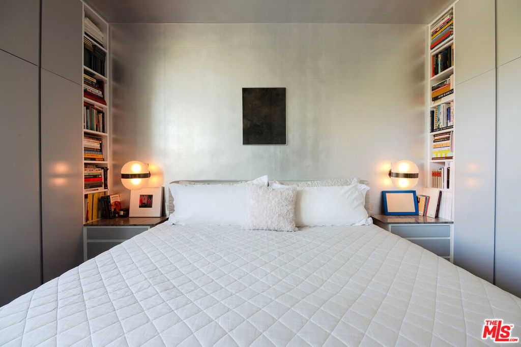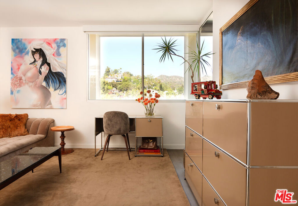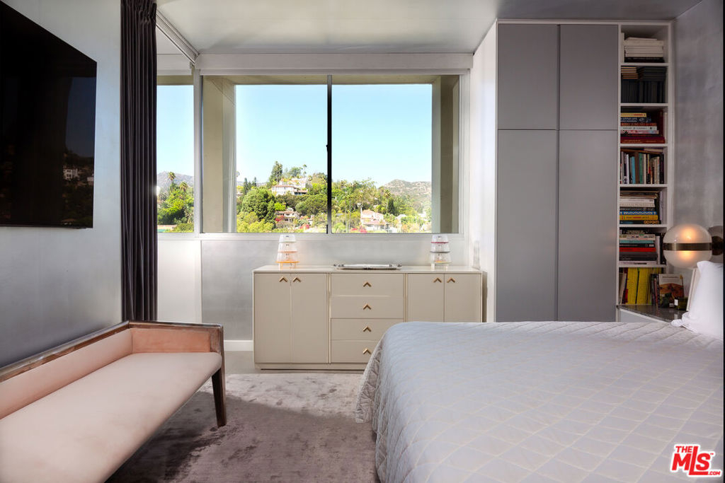The iconic Los Feliz Towers. This rare northwest corner unit offers a rare expression of modernist simplicity and elevated city living. Designed to celebrate light, clean lines, and uninterrupted vistas, the home creates a seamless dialogue between indoors and out. From sunrise over the Los Feliz Hills to golden-hour views of Griffith Observatory, every moment feels cinematic. Floor-to-ceiling Arcadia glass doors extend the living space onto a wraparound terrace overlooking lush gardens and the heated pool. The kitchen combines elegance and function, with a center island concealing a refrigerator, freezer, and wine fridge, while a wall of minimalist wood cabinetry provides storage and adds warmth and refinement. In the bedroom, a floating center wall cleverly conceals frosted-glass pocket doors that close for privacy or retract for openness. A versatile den adapts effortlessly to your lifestyle - ideal as a home office, library, media lounge, or guest retreat. The spa-inspired bathroom is a serene sanctuary, complete with a Kohler soaking tub, dual sinks, a separate shower, and custom cabinetry. Renovated with meticulous attention to detail, the home offers radiant heated floors, soundproofed walls and ceilings, and fully updated electrical, plumbing, and HVAC systems. As Los Feliz's only full-service high-rise, the Towers provide 24-hour security, doorman service, a pool, fitness center with sauna, and a clubhouse. All just steps from beloved neighborhood favorites like Little Dom's, Messhall Kitchen, and Blue Bottle Coffee. The ultimate Los Feliz residence, where design, luxury, and lifestyle converge.