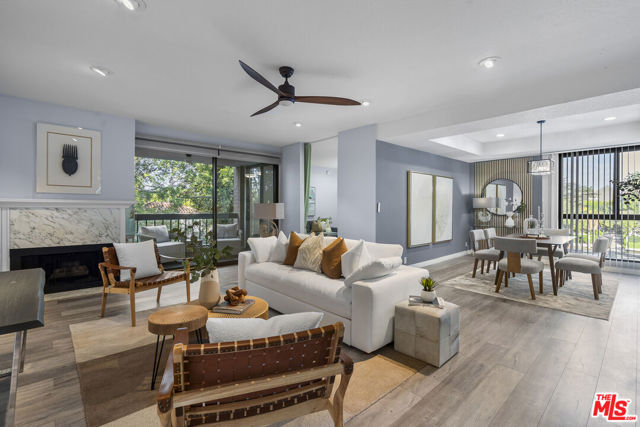 Peaceful northeast-facing corner unit perfectly situated away from Wilshire Blvd, offering a quiet retreat with bright east-facing rooms and serene treetop views from the living room. This beautifully remodeled home features hardwood flooring, recessed lighting, and spacious living space with pre-wired for a sound system. The living room opens to a large balcony overlooking Hancock Park's lush greenery ideal for morning coffee or evening relaxation. The remodeled kitchen includes quartz countertops, stainless-steel appliances, and sleek cabinetry, with a cozy breakfast nook beside a large window providing great ventilation and natural light. In addition to the dining area, the layout offers excellent functionality. The primary and secondary bedrooms each have their own en-suite baths, while a separated den across the living room can serve as a third bedroom, home office, or multipurpose space. With only one shared wall, this corner residence ensures exceptional privacy and abundant sunlight throughout. Additional features include in-unit laundry, two side-by-side parking spaces, and a private storage unit. The community offers 24-hour security, pool, spa, sauna, and fitness center. Located within the coveted Third Street Elementary School District and close to Hancock Park's finest shops and restaurants.