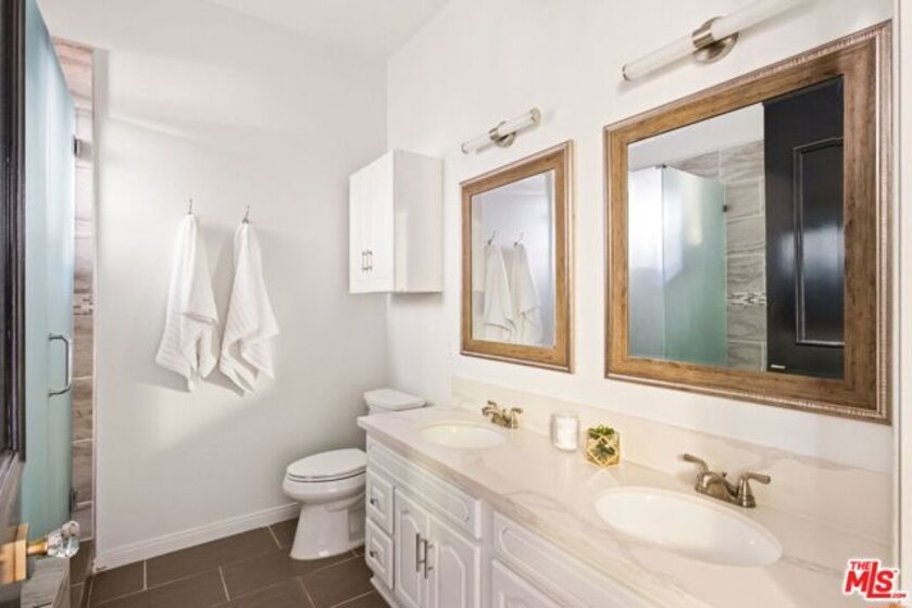 Welcome to this beautifully updated corner rear 2-bedroom, 2-bathroom condo just moments from Hancock Park and Larchmont Village, offering 1,180 SF of bright, open living. The thoughtfully designed layout connects the living, dining, and kitchen areas, creating a space that feels open and inviting. Large windows and sliding glass doors bring in natural light and open to a private patio, enhancing the indoor-outdoor flow. Elevated above street level, the unit offers added privacy while still maintaining convenient access. The kitchen is clean and modern, featuring quartz countertops, a herringbone backsplash, stainless steel appliances, and bar seating ideal for casual dining and entertaining, plus a built-in desk for a convenient work-from-home setup. Both bedrooms are generously sized with walk-in closets, and the primary suite offers direct patio access and an en-suite bathroom with dual vanities, a soaking tub, and a separate shower. Additional features include a dedicated laundry room with storage, new flooring throughout, recessed lighting, a decorative fireplace, and a new HVAC system. The secure building offers gated parking with two tandem spaces and guest parking. A well-designed, move-in-ready home in a central, highly desirable location.