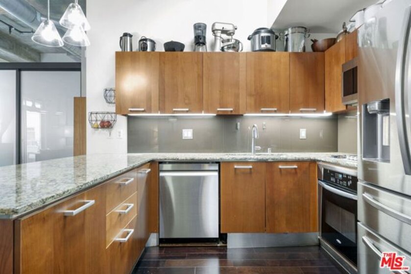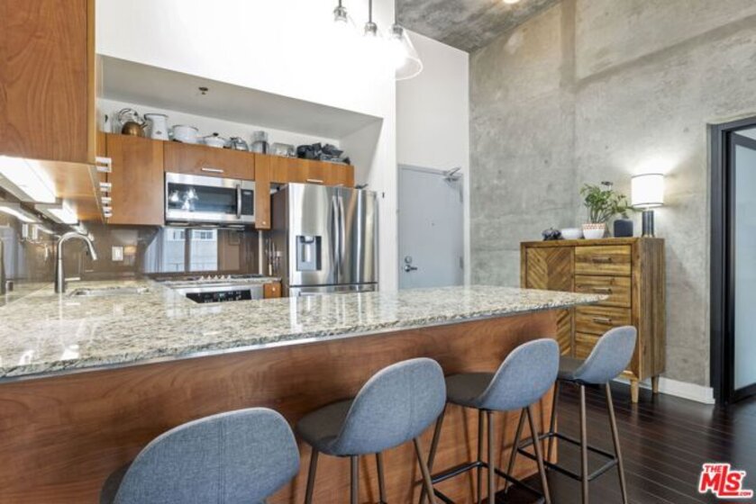 Rise above the rhythm of downtown in a rare top floor loft where elevated design meets uninterrupted skyline views and every day feels intentionally curated. Flooded with natural light from dramatic floor to ceiling windows this residence captures sweeping DTLA vistas that are widely considered the finest in the building creating a constant backdrop of energy day to night. Step inside through an impressive entry anchored by a striking exposed concrete columns with designed concrete walls to showcase a curated art collection. The open concept living space is framed by soaring 14 foot ceilings with exposed ducts and pipes blending industrial character with refined finishes. The chef inspired kitchen features sleek cabinetry Caeserstone countertops and stainless steel appliances ideal for hosting elevated dinners or relaxed evenings with the city lights as your backdrop. An expansive walk in closet and in unit washer dryer add seamless functionality to a polished lifestyle. Market Lofts offers an ideal blend of convenience and luxury an opportunity not to be missed, and timed perfectly for a front row view of the 2026 WORLD CUP AND THE 2028 SUMMER OLYMPICS! With Just 1,440 steps away from Crypto.com Arena , this location places you at the epicenter of global events while maintaining the privacy of a top floor retreat. Two rare side by side parking spaces in a secured attached garage deliver everyday ease in a high demand urban setting. Residents enjoy a full service experience with 24 hour concierge security, resort style pool and spa , fitness center , movie screening room , private party lounge , BBQ areas and onsite management along with an Amazon Locker for convenience. Positioned in South Park one of DTLA most vibrant neighborhoods you are moments from Ralphs, Whole Foods , LA Live , the Financial District and premier dining and entertainment all within a walk. Designed for professionals creatives, and investors who value access design and experience this residence delivers a true live work play lifestyle. Schedule your private showing and secure one of the most compelling top floor opportunities in downtown Los Angeles. HOA : $658.21 + (2) PARKING $576.54 + MAINTENANCE $124.42 = $1.359.17 TOTAL