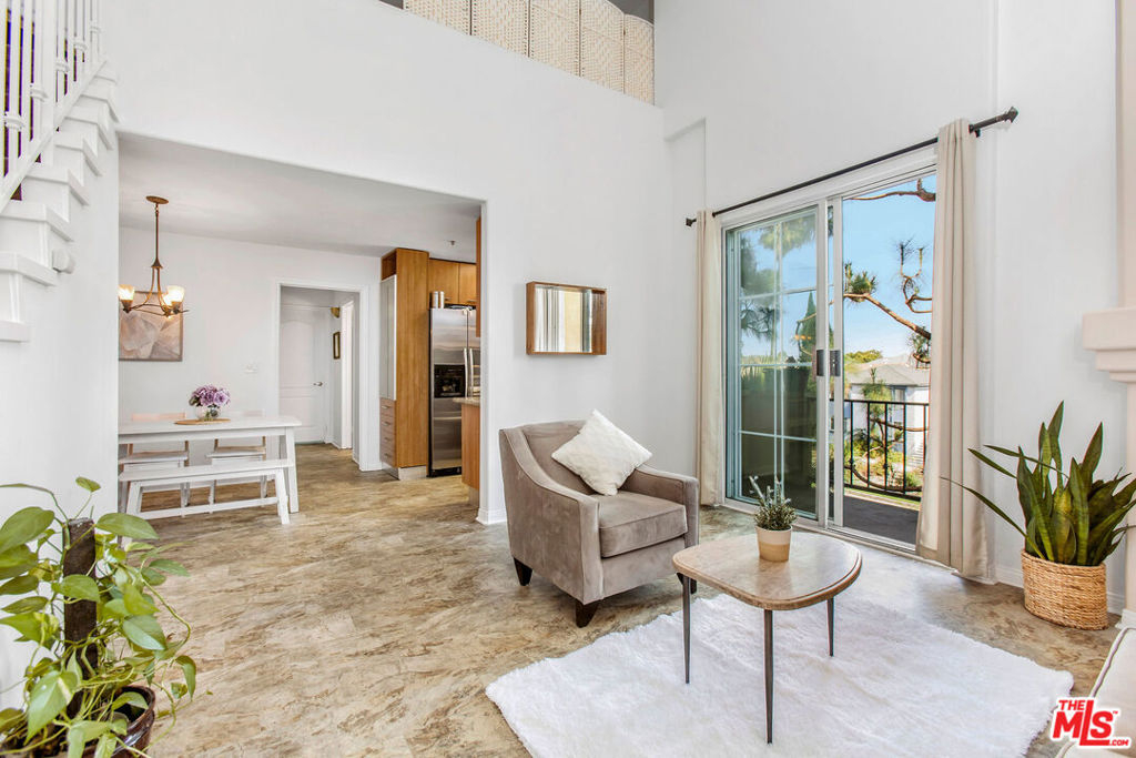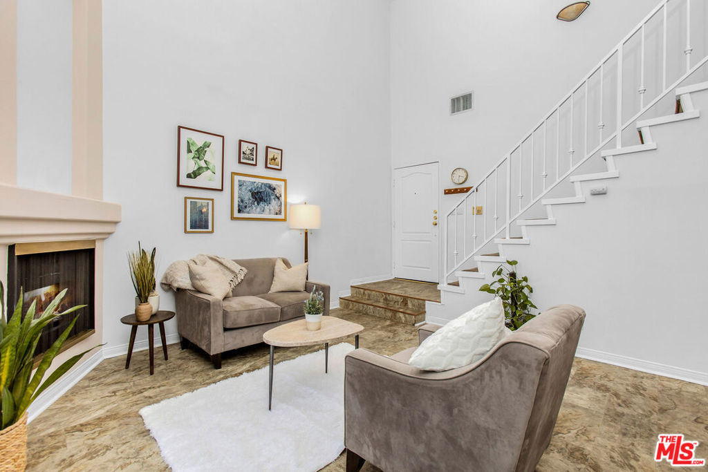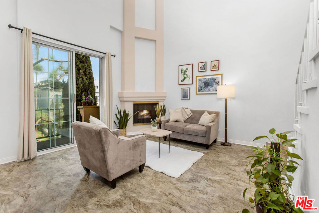 Soaring ceilings and massive volume abound in this light and bright top-floor unit, complete with two spacious bedrooms, an incredible den/ family room that could easily be a 3rd bedroom, functional office space, lots of storage, and in-unit laundry. Great entertaining starts in the gourmet kitchen, which boasts stainless steel appliances and granite countertops, and opens into the dining room and living room with towering windows, a fireplace, and a private balcony. Upstairs, the sprawling den is wired with surround sound, and leads into the large bonus room currently in use as a home office. The secluded master suite includes vaulted ceilings, a cozy fireplace, en suite bath, and three closets. 7037 La Tijera is an appealing Mediterranean-inspired building that was redone in 2003, and also features a gym and a gated parking garage. Centrally located, just moments away from beaches, LAX, freeway access, the Howard Hughes complex, SoFi stadium, the recently redone Forum, and tons of shopping and dining options.