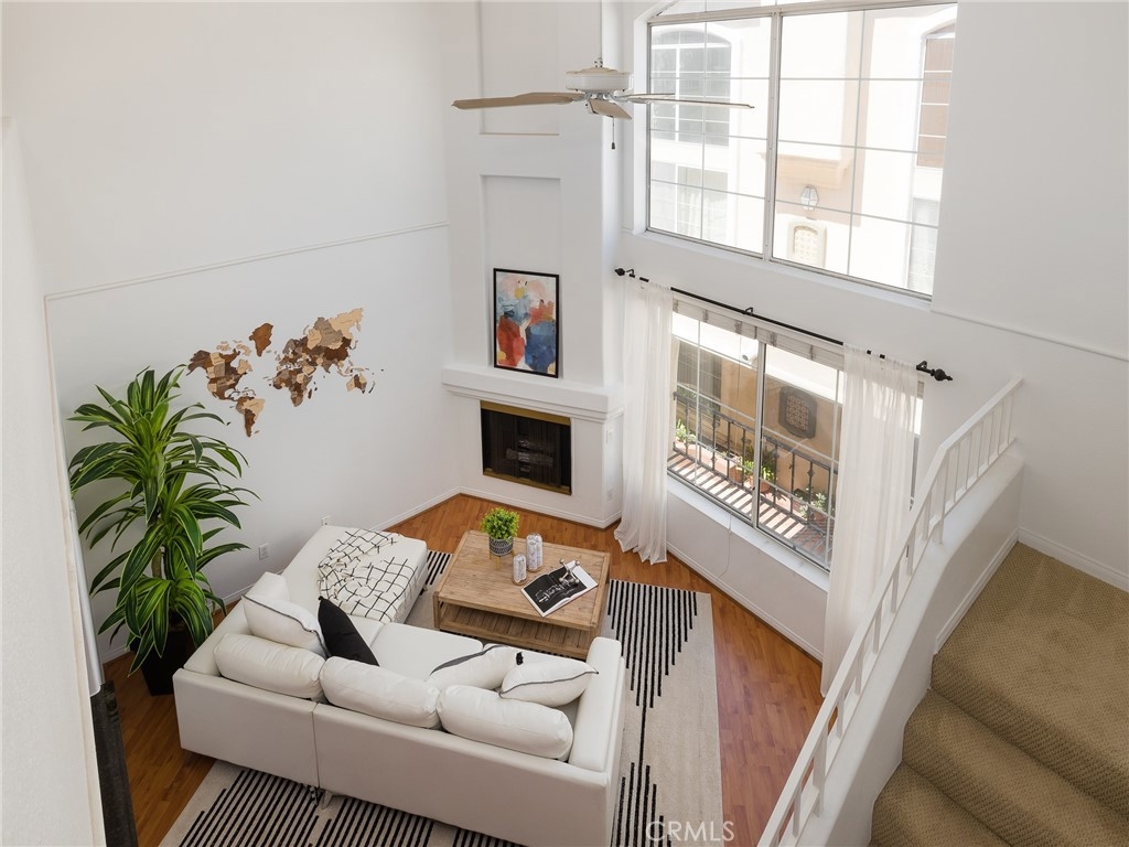 Beautiful Mediterranean condo located in the Capri Villas. As you enter this private gated building, you walk into a beautiful Spanish courtyard with Saltillo tile and luscious landscaping. This meticulously clean and contemporary condo is turnkey. As you walk in you are greeted by a step-down living room that features 20-foot vaulted ceilings, an abundance of natural light, windows, and a gas fireplace. The upgraded clean-lined kitchen has beautiful cabinets, new countertops and backsplash, and new stainless steel appliances. The primary bedroom is located on the first floor and features great-sized closets and a private master bath. The second bedroom/loft is located on the second level with a fireplace, and a newly re-painted private deck, perfect for entertaining. Additional features include Central A/C and heating, 2 parking spots, and a gym.
