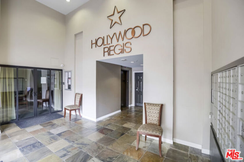 Classy and Fully updated sleek Condo in Hollywood! Perfectly located in the heart of Hollywood/Sunset Strip at the Hollywood Regis building, this FULLY RENOVATED JNR/1BA home is fully equipped for easy and comfortable living. Step inside to find an open floor plan with premium finishes, fabulous natural light, stunning hardwood floors, a designer color scheme, and a spacious living room. Entertain guests and mix drinks in the open concept kitchen featuring quartz countertops, stainless-steel appliances, dishwasher, sleek ample white cabinetry, gas cook-top, built-in microwave, track lighting, and an adjacent dining room with double glass soundproof sliding glass doors to the spacious balcony. Sit on the balcony and sip cocktails with friends while admiring the fabulous views of downtown Los Angeles. Discover relaxing evenings in the NYC loft style bedroom, which has a large walk-in closet with your own washer and dryer, Separate bathroom w/storage vanity and a shower/tub combo and separate vanity area. For a fit lifestyle, enjoy the community amenities of a sparkling heated swimming pool, hot tub, sun deck w/cabanas, and a fitness ceneter! Other features: 1-covered and secured parking space, onsite management, security fob on all entries, close to Runyon Canyon, shopping, chic restaurants, the Hollywood Bowl and more! Easy living LA style, the perfect pied- a -terre, first home or LA city pad, this little gem is a must see!