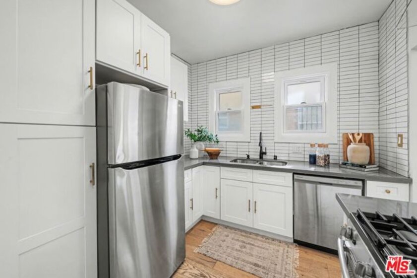 Step into timeless charm with this beautifully restored 1922 Craftsman flat in the heart of the Hollywood Studio District. This inviting 2-bedroom, 1.5-bath floor-through unit blends historic character with thoughtful modern upgrades, creating a warm and stylish place to call home. Soaring ceilings, period details, and a spacious living and dining area set the tone, while an original Batchelder fireplace, wide-plank hardwood floors, and abundant natural light enhance the home's airy feel. The tastefully renovated kitchen and baths feature quartz countertops, shaker cabinetry, custom tile work, stainless steel appliances, and a vented range hood. Enjoy your own little garden out front, an immensely walkable neighborhood, a single-car garage plus tandem parking, and a secure gated entry. Ideally located just moments from Larchmont Village, Paramount Studios, Koreatown dining, and convenient DTLA transit access.