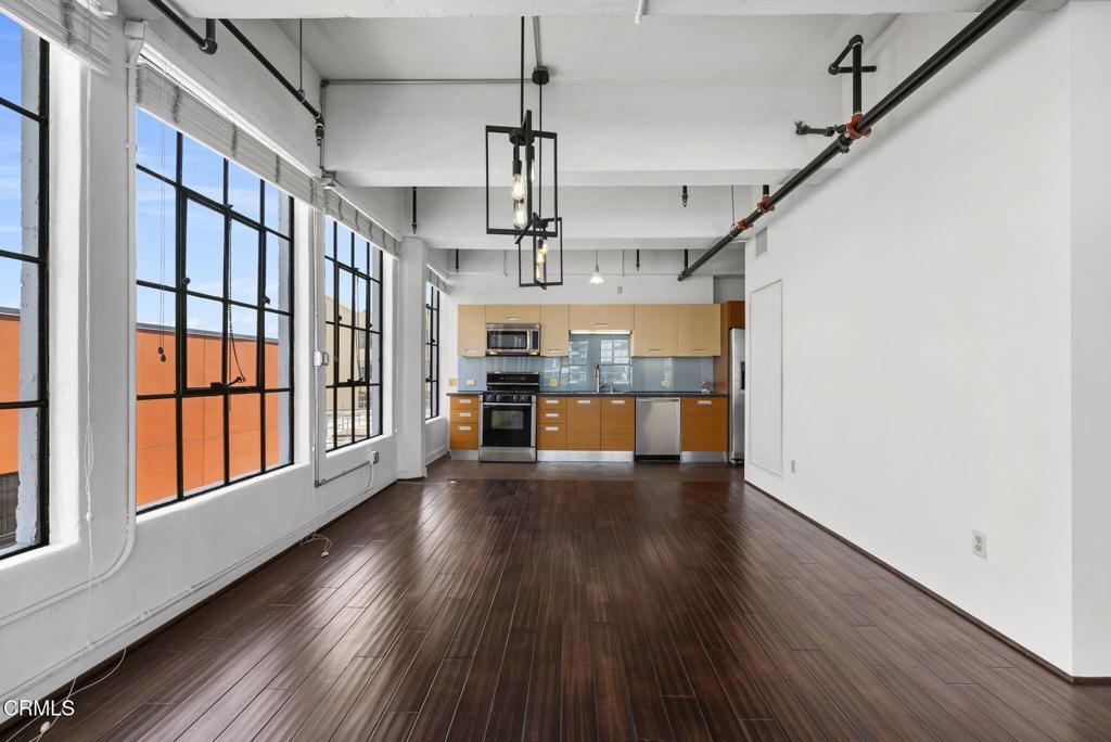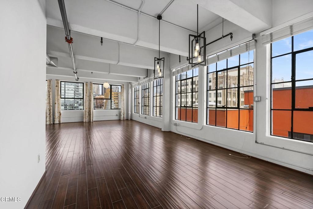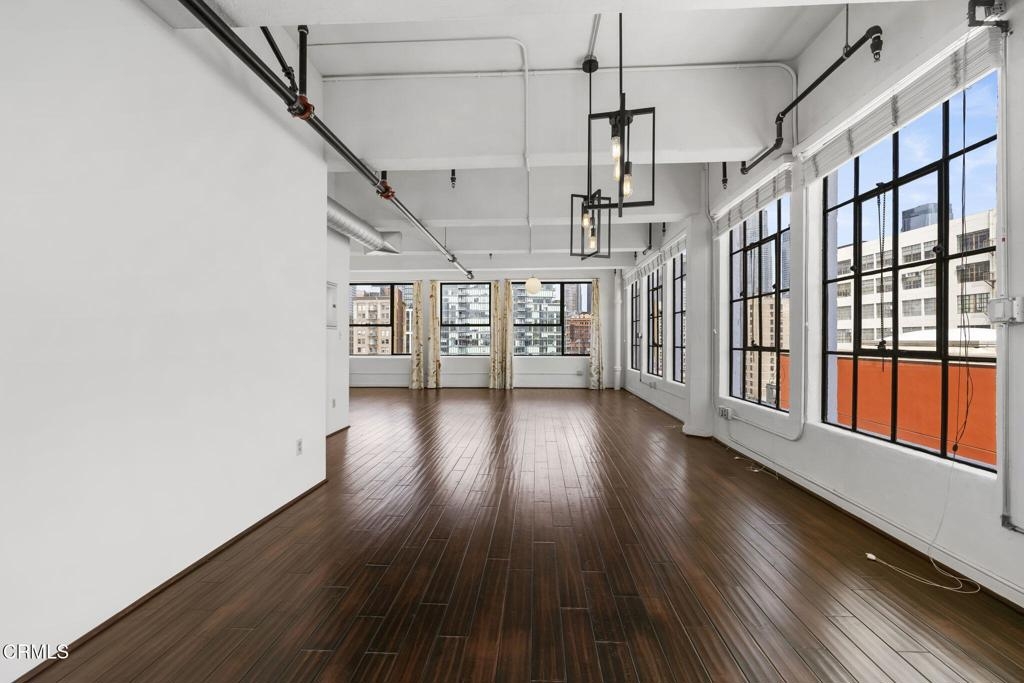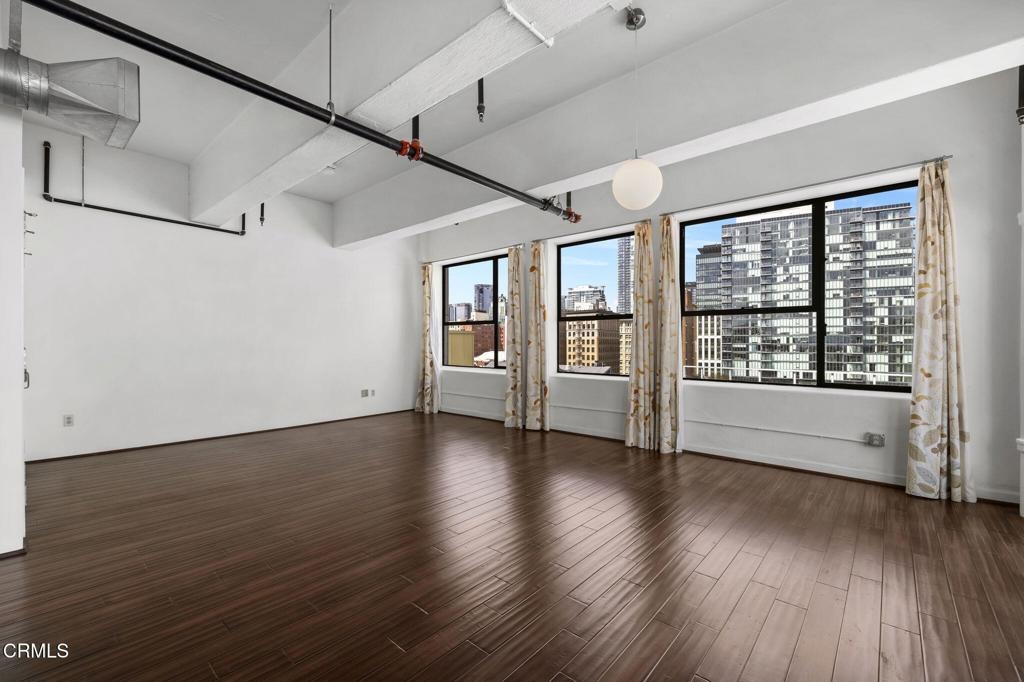 Views, Views, Views - and with On-Site Parking!! Welcome to the historic Cornell Building within the Fashion District's Santee Village. Located on the 10th floor, just below the top floor and penthouse, this open artist's studio features a gorgeous industrial design with 10ft+ ceilings, custom hardwood-like floors and a prime corner building location for maxim privacy and use of space. Two walls of original steel-frame casement windows showcase an abundance of natural light and the beauty of downtown with 180-degree unobstructed views of the city, and even the San Gabriel mountains on a clear day. Enjoy preparing meals in the modern kitchen featuring stainless steel Bosch appliances and accented by gorgeous wood cabinetry. The bathroom features an oversized soaking tub, additional storage space and includes a dual operating washer/dryer combo appliance. Additional features include custom overhead lighting, central A/C and Heat, and highly coveted & convenient On-Site parking for one car inside the building's parking garage at the basement level. Lastly, this live/work building qualifies under the Mills Act, providing significant property tax savings for its owners.The Santee Village offers a wide range of communal amenities such as a roof top pool and spas, basketball court, golf driving range, BBQ areas, fitness center, 24hr on-site security, and local market & food establishments within the village courtyard. Centrally located and minutes to Pershing Square, The Broadway Corridor, bars, shops & restaurants including the famed Sonoratown and the Tower Theatre flagship Apple Retail Store, Santee Village is downtown LA living at it's best!