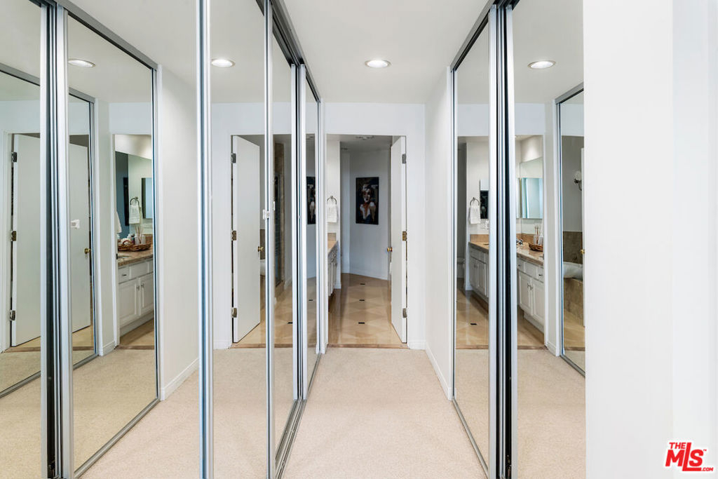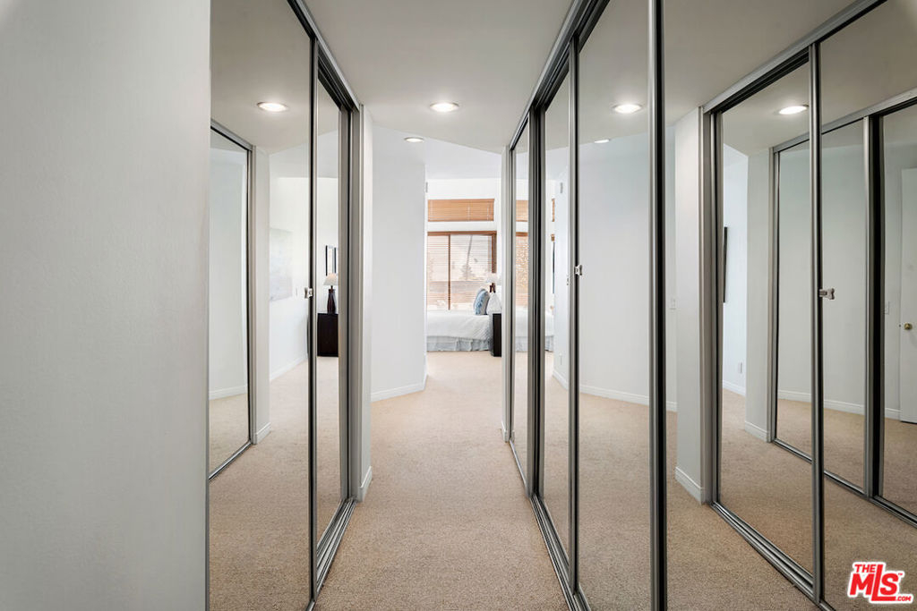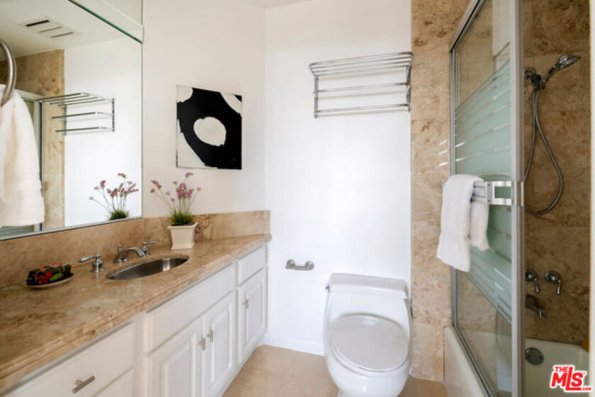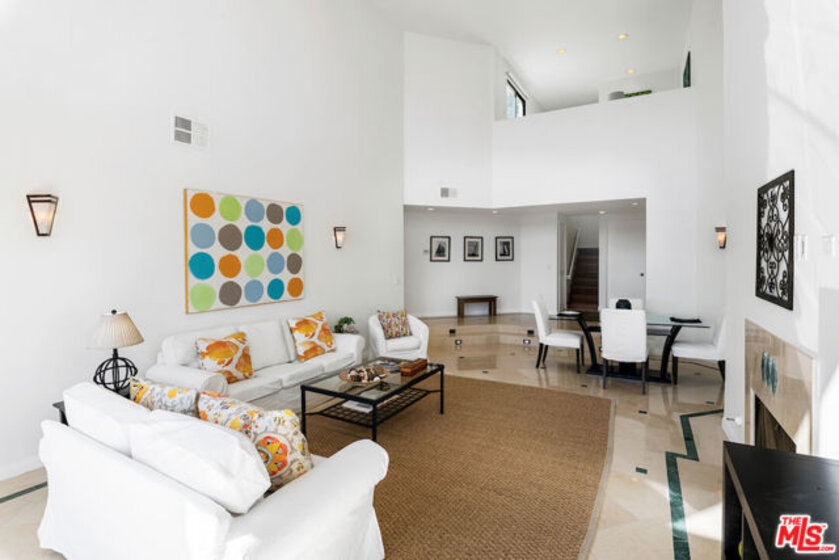 Brentwood's Premier Corner Penthouse! 2 Bedrooms + Loft + 2.5 Baths with approx. 1800 sqft. Dramatic Two-Story living room with floor to ceiling windows. This South facing unit is infused with natural light throughout. Tastefully laid marble flooring with deep emerald accents. Spacious floor plan that expands to an outdoor patio with palm tree views and a sleek marble fireplace provides a dramatic architectural focal point. Beautifully redone Chefs Kitchen with stainless steel appliances and wine fridge. Theres an Intimate breakfast alcove that opens to the balcony for your perfect sunrise coffee. Dedicated laundry closet features a full sized side by side washer/dryer. Primary suite retreat offers a sense of immense scale with double-height ceilings and is also anchored by a fireplace and second private terrace. Expertly curated wardrobe gallery provides an expansive dressing area with stone infused primary bath with separate shower and soaking tub. Ample counter space and a dual sink vanity anchors the primary bath. Graciously proportioned second bedroom suite features its own private bath. Upper-Level loft with ocean views is a master work of indoor-outdoor living with a fireplace. Secluded rooftop deck offering unparalleled vistas of Brentwood's urban landscape. Building amenities include controlled access, indoor pool, spa, sauna and gym. The Bundy Brentana Condominiums is a 24 unit condo complex built in 1983. Two car side by side parking plus guest spots. Enjoy immediate proximity to renowned San Vicente Bistros and Boutiques. Close to UCLA, Santa Monica, Century City and the beach.There is a special assessment for $235. For 18 months only.