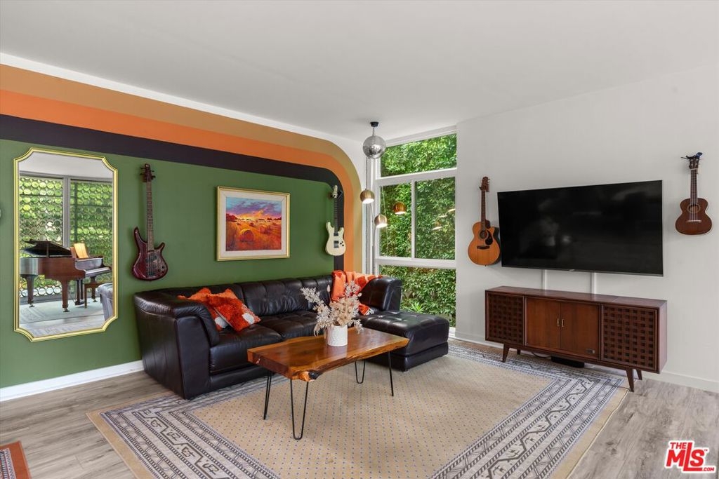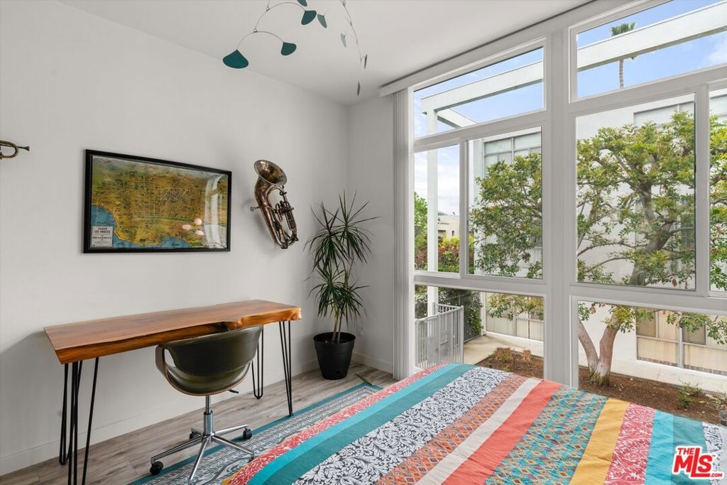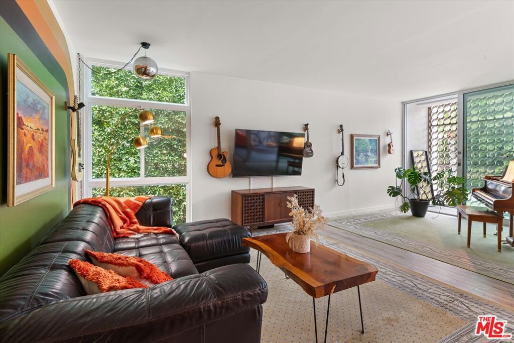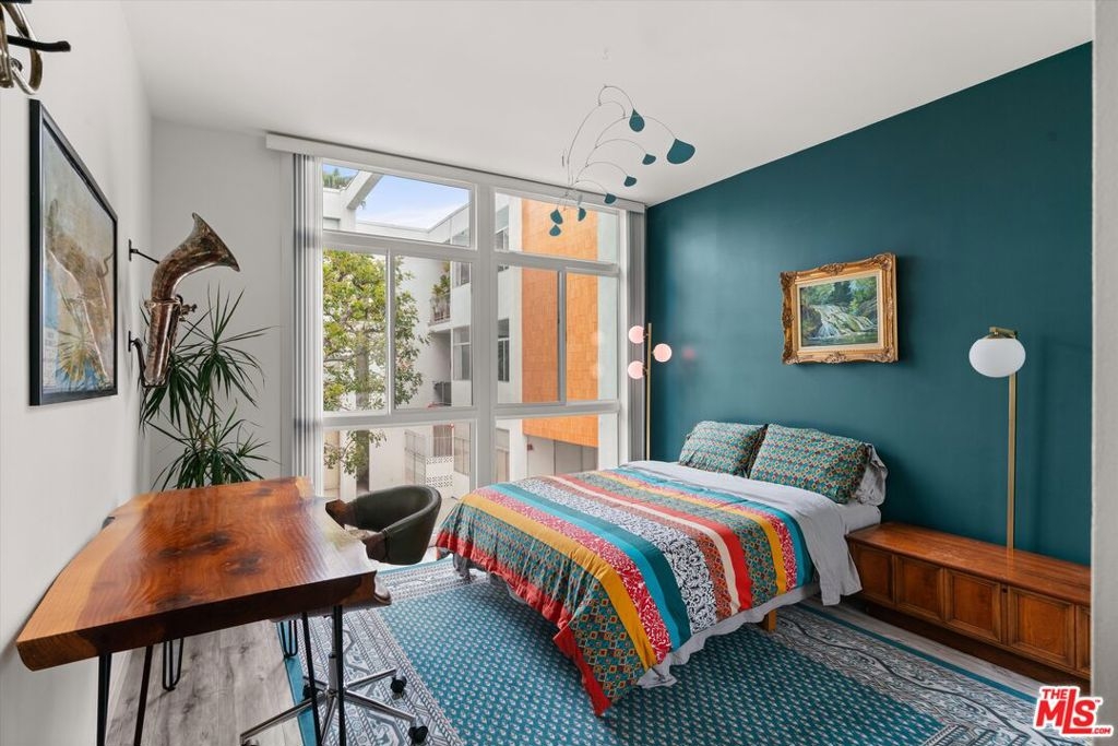 Welcome to 7960 Selma Ave, where Mid-Century architecture meets modern living in the vibrant heart of Los Angeles, California. Living in a Mid-Century building isn't just about aesthetics, it's about embracing a lifestyle rooted in timeless elegance and modern sophistication. As you step into this iconic building, you'll be immediately struck by its striking Mid-Century design elements that pay homage to an era of architectural innovation and timeless style. The sleek design aesthetic is complemented by retro touches such as funky wallpaper and vintage-inspired light fixtures, creating an inviting atmosphere reminiscent of a bygone era. From the open-concept layout to the indoor/outdoor vibe, every detail exudes an air of refined taste. The new floor-to-ceiling Fleetwood doors open up to your private balcony where you can entertain guests or enjoy your morning coffee. The expansive windows were just replaced and punctuate the building's facade, flooding the interior spaces with natural light and offering sweeping views of the Hollywood Hills. The disco ball and Mid-Century inspired mural in the living room will transport you back in time when groovy tunes filled the air, and every moment was infused with the spirit of carefree indulgence and effortless cool. This isn't just a residence; it's a celebration of an iconic era, where the spirit of disco, vintage chic, and effortless cool converge to create an atmosphere unlike any other. Dive into relaxation with the heated pool, where every swim becomes a soothing retreat. For added peace of mind, the secure entry and parking ensures that only residents and authorized guests can access the building. Enjoy unparalleled access to the city's finest entertainment venues, trendy restaurants, upscale shopping, and iconic landmarks, all within moments of your doorstep. The HOA is open to the new buyer installing laundry in the unit.