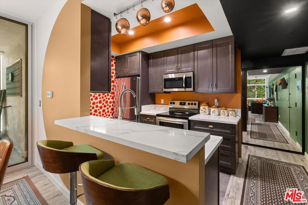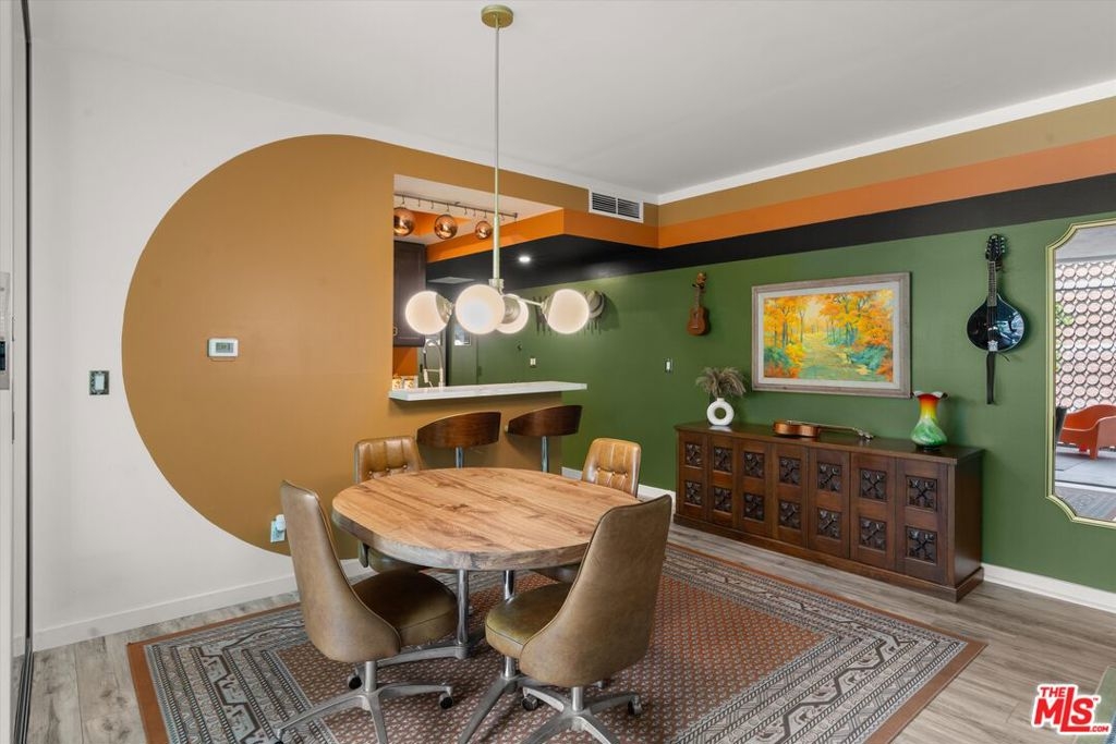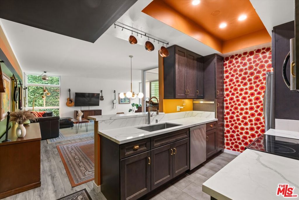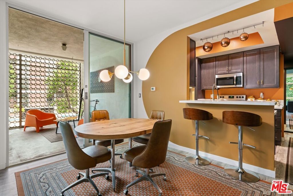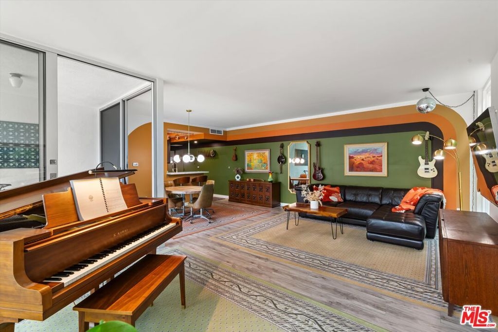 Welcome to 7960 Selma Ave, where Mid-Century architecture meets modern living in the vibrant heart of Los Angeles, California. Living in a Mid-Century building isn't just about aesthetics, it's about embracing a lifestyle rooted in timeless elegance and modern sophistication. As you step into this iconic building, you'll be immediately struck by its striking Mid-Century design elements that pay homage to an era of architectural innovation and timeless style. The sleek design aesthetic is complemented by retro touches such as funky wallpaper and vintage-inspired light fixtures, creating an inviting atmosphere reminiscent of a bygone era. From the open-concept layout to the indoor/outdoor vibe, every detail exudes an air of refined taste. The new floor-to-ceiling Fleetwood doors open up to your private balcony where you can entertain guests or enjoy your morning coffee. The expansive windows were just replaced and punctuate the building's facade, flooding the interior spaces with natural light and offering sweeping views of the Hollywood Hills. The disco ball and Mid-Century inspired mural in the living room will transport you back in time when groovy tunes filled the air, and every moment was infused with the spirit of carefree indulgence and effortless cool. This isn't just a residence; it's a celebration of an iconic era, where the spirit of disco, vintage chic, and effortless cool converge to create an atmosphere unlike any other. Dive into relaxation with the heated pool, where every swim becomes a soothing retreat. For added peace of mind, the secure entry and parking ensures that only residents and authorized guests can access the building. Enjoy unparalleled access to the city's finest entertainment venues, trendy restaurants, upscale shopping, and iconic landmarks, all within moments of your doorstep. The HOA is open to the new buyer installing laundry in the unit.