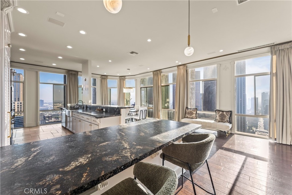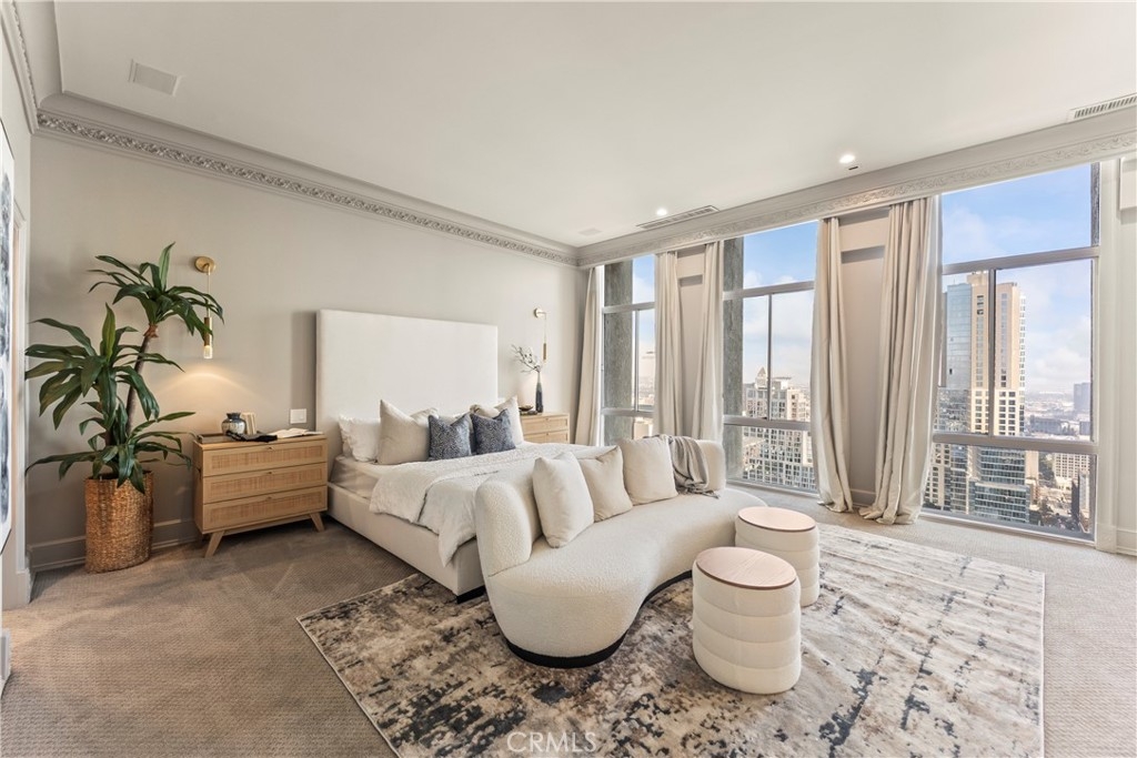 Luxury Live Auction! Bidding to start from $1,400,000! High above the cultural heart of Downtown Los Angeles, this Penthouse at Bunker Hill Tower occupies a rare vantage point—an aerie suspended on the 32nd floor, where the city’s skyline becomes both backdrop and art. Recently refreshed in a refined neoclassical palette, the residence blends timeless architectural lines with the openness and light only a true penthouse can offer. Inside, soaring ceilings, exclusive to the top floor, create a sense of vertical drama. Soft architectural detailing, graceful moldings, and beautifully scaled rooms evoke an understated luxury not often found in contemporary high-rise living. Walls of glass pull the city inward, offering uninterrupted views that shift from morning clarity to evening glow. A thoughtfully composed floor plan provides two spacious en-suite bedrooms, two and one-half baths, and a library/den with a built-in wet bar, ideal for quiet study or intimate gatherings. The expansive living and dining areas invite both grand entertaining and elegant everyday living. An in-unit washer/dryer adds modern convenience rarely available in the building. Bunker Hill Tower is one of Los Angeles’ most enduring full-service addresses, offering an array of amenities more akin to a private resort: a 24-hour concierge, Olympic-size pool, spa, two fitness centers, wet and dry saunas, tennis and pickleball courts, lush outdoor spaces, BBQ areas, and a residents’ market and salon—all seamlessly integrated into daily life. With all utilities included in the HOA, comfort and ease are woven into the fabric of ownership. Set moments from the Disney Concert Hall, The Broad, and the city’s finest dining and cultural institutions, this Penthouse is both sanctuary and statement—an elevated retreat where classical design, modern convenience, and sweeping views converge in a singular Downtown offering.